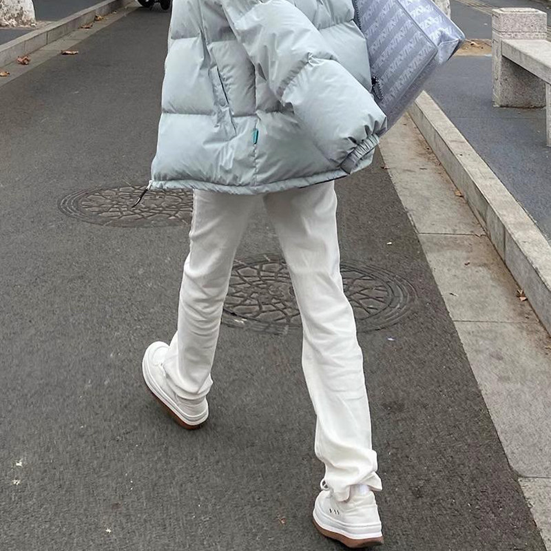白色直筒牛仔裤女高腰2026年春夏新款小个子窄版阔腿烟管裤子潮流