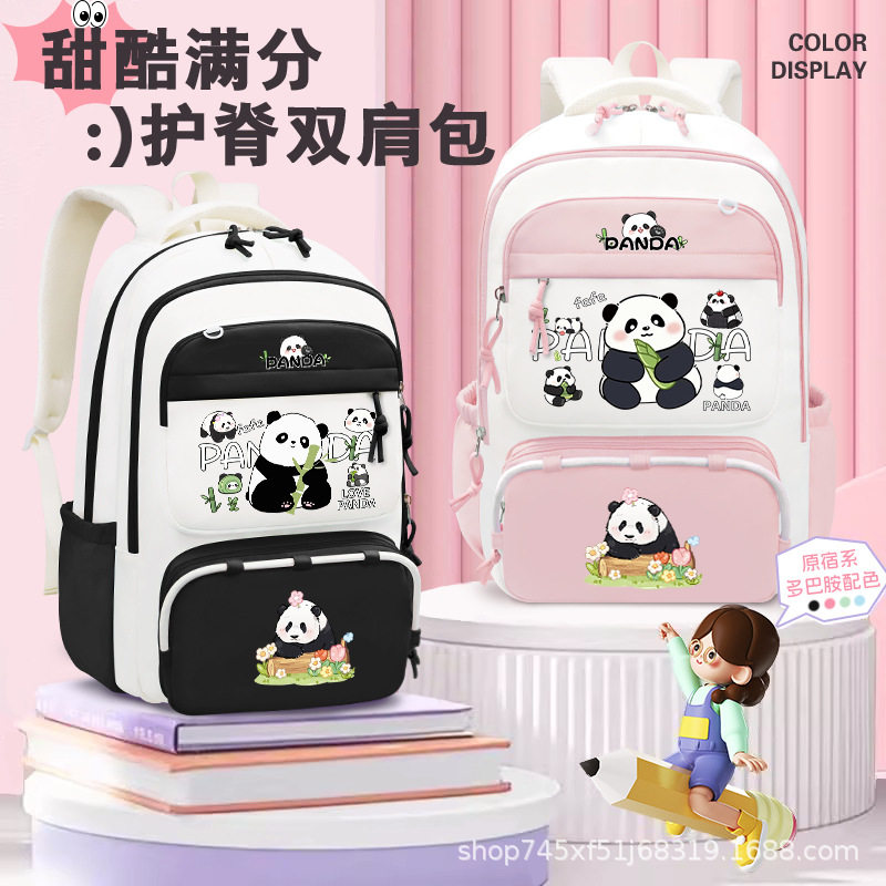 熊猫花花书包可爱卡通大容量双肩包学生男女高颜值减负轻便背包