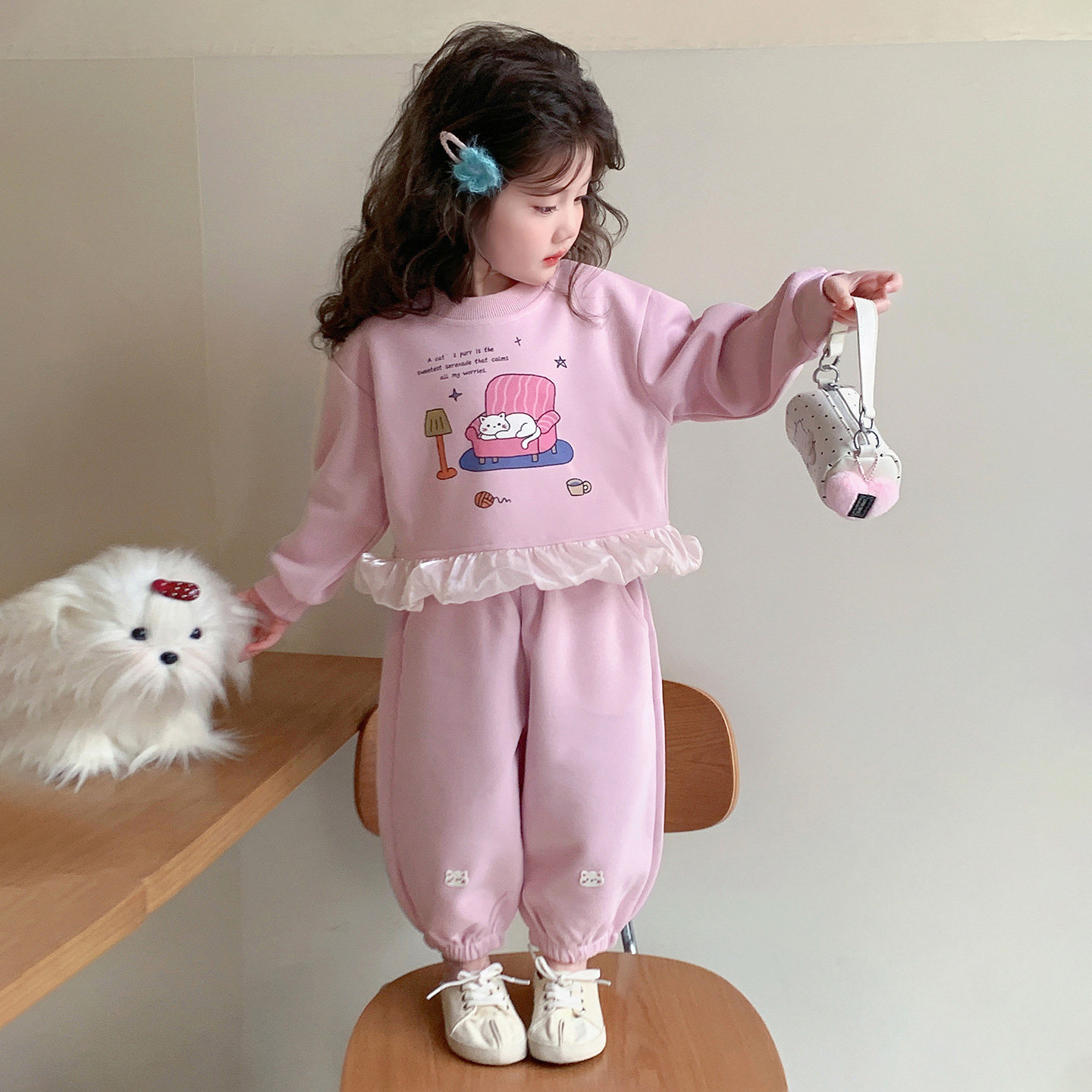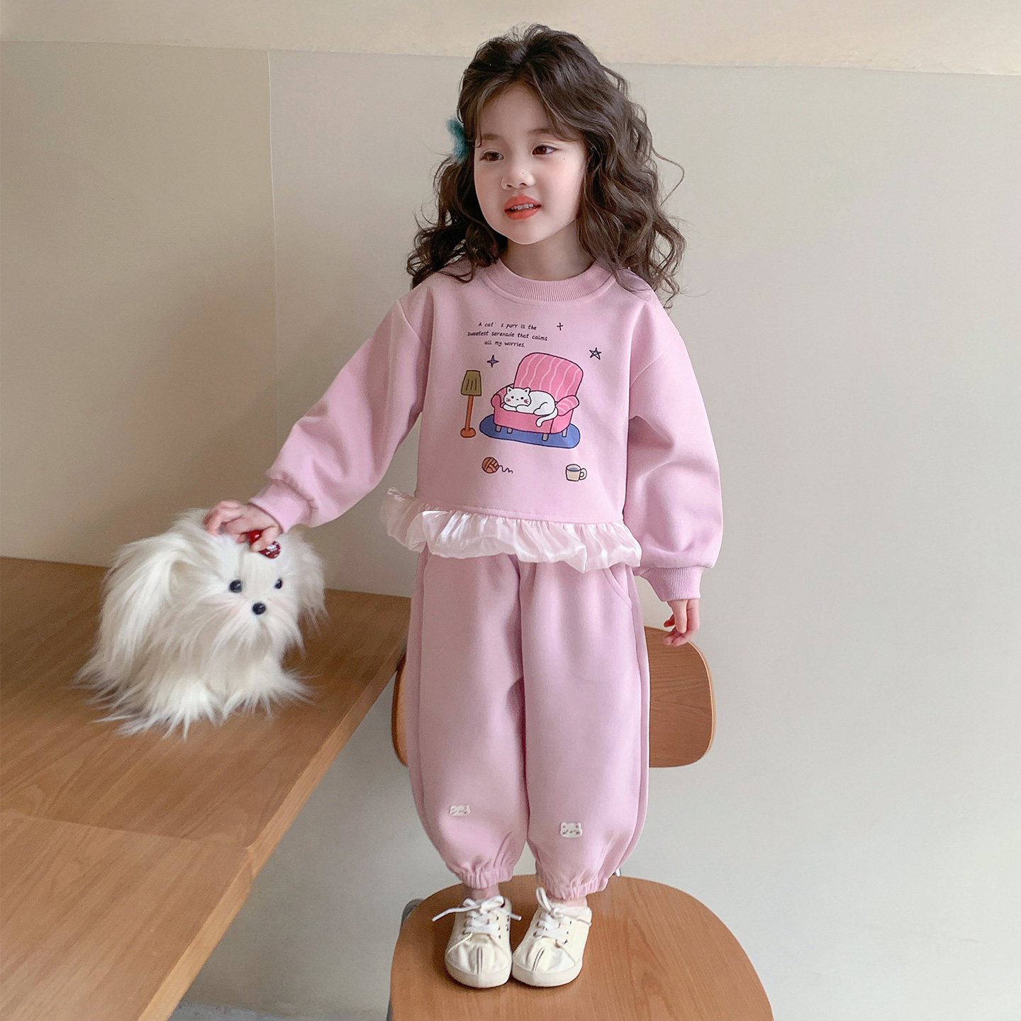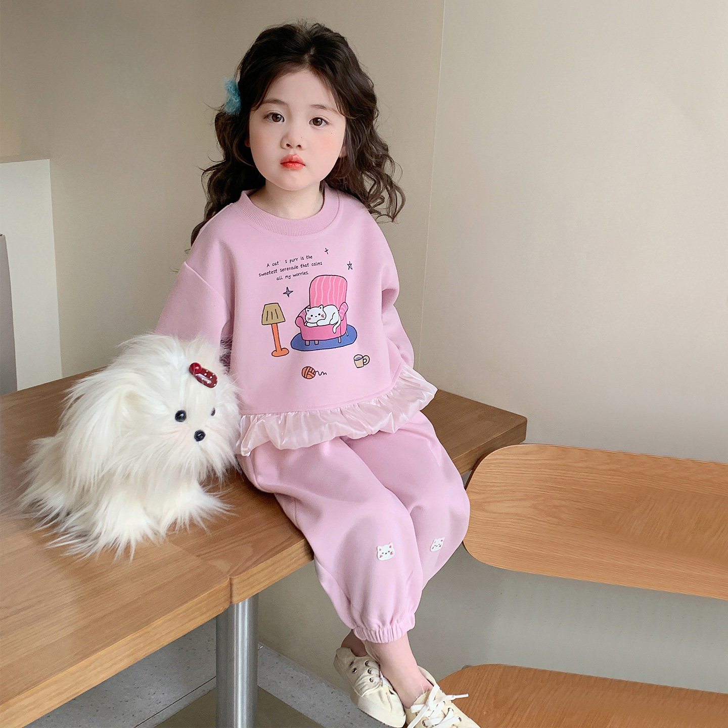 女童春秋款猫咪套装2026新款洋气时髦儿童女宝宝春季春装早春卫衣