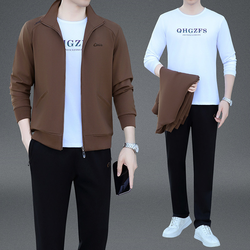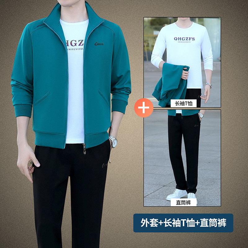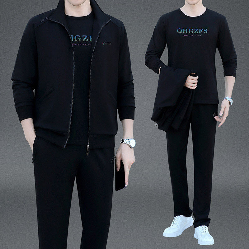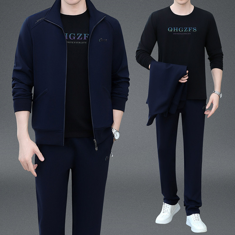 正品春秋款中老年50-60-70岁男士父亲棉三件套跑步运动服休闲套装
