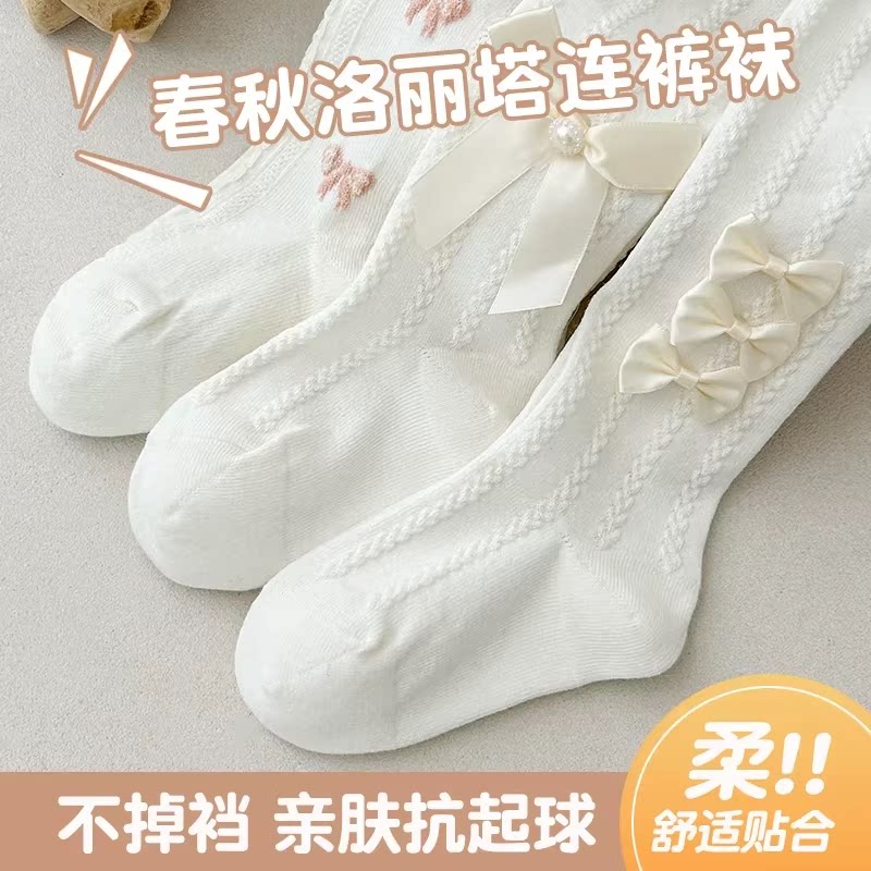 女童连裤袜春秋纯棉薄款洛丽塔配裙子宝宝打底裤儿童中厚外穿韩版
