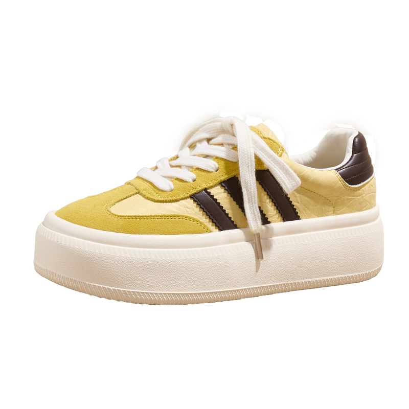 黄色德训鞋女款内增高厚底2026春季新款百搭真皮小白休闲运动板鞋