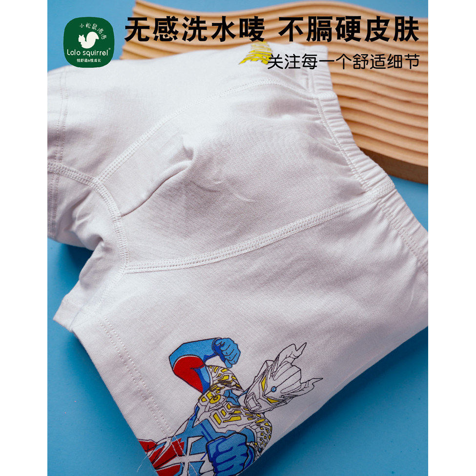 小松鼠洛洛儿童莫代尔男童平角内裤奥特曼透气不夹屁屁A类2条装