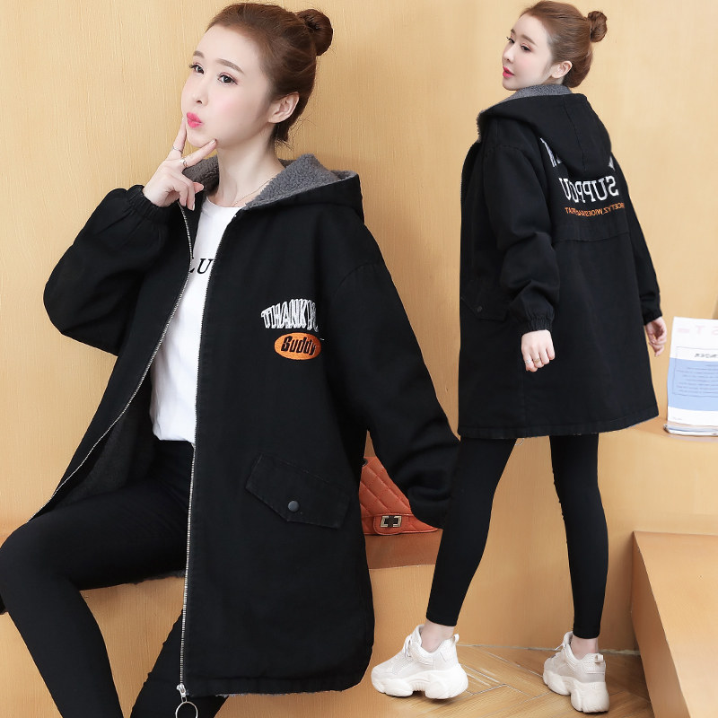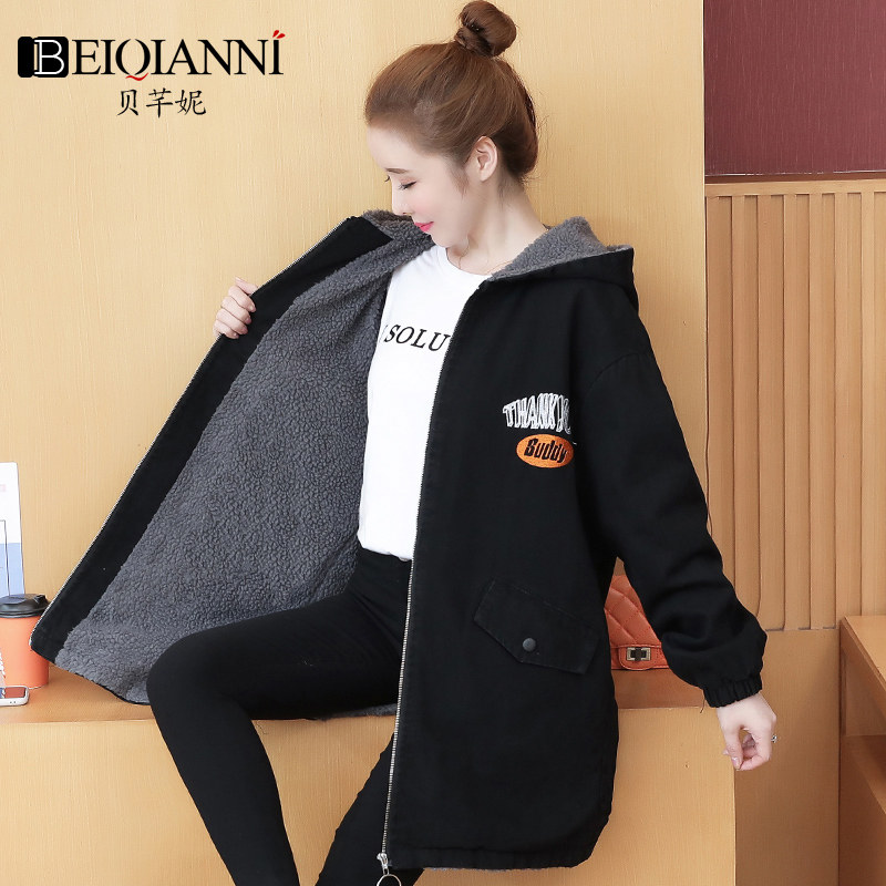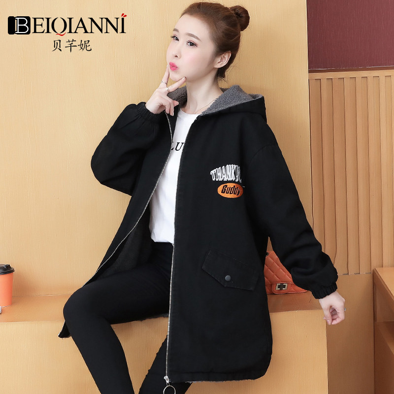 中长款羊羔毛牛仔外套女冬季棉服宽松加绒妈妈装女士加厚大码棉衣