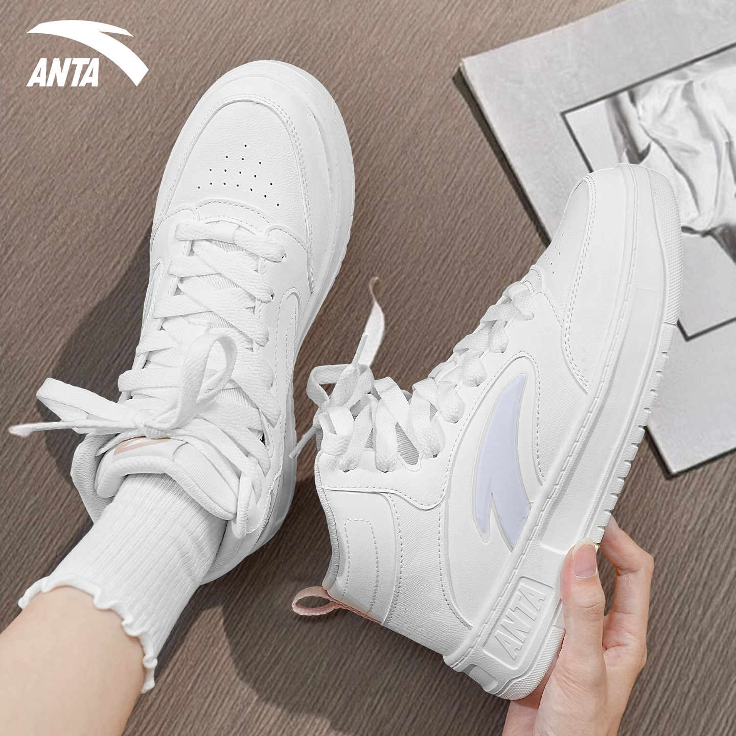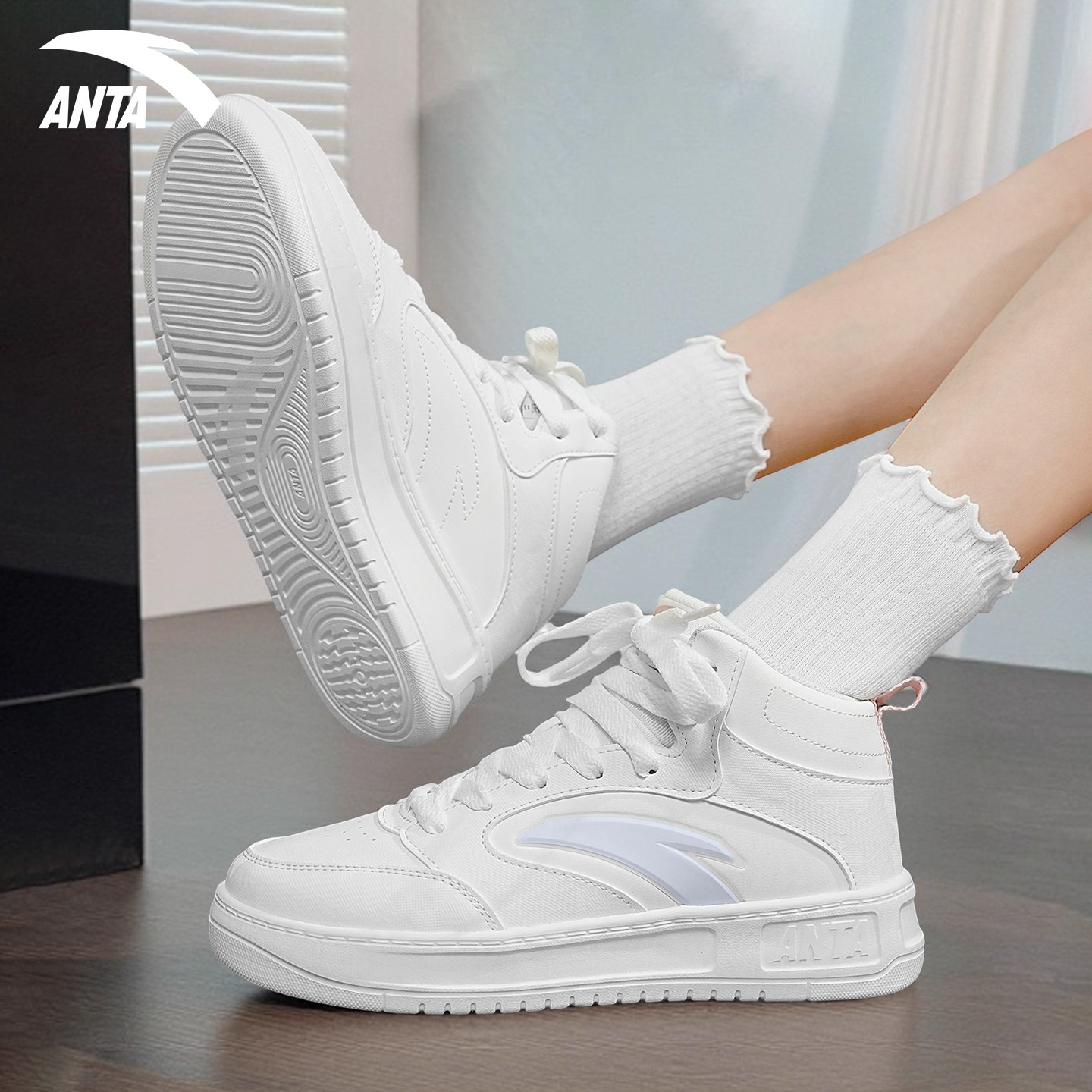安踏板鞋高帮女鞋小白鞋爆款夏季透气运动鞋初中生轻便舒适休闲鞋