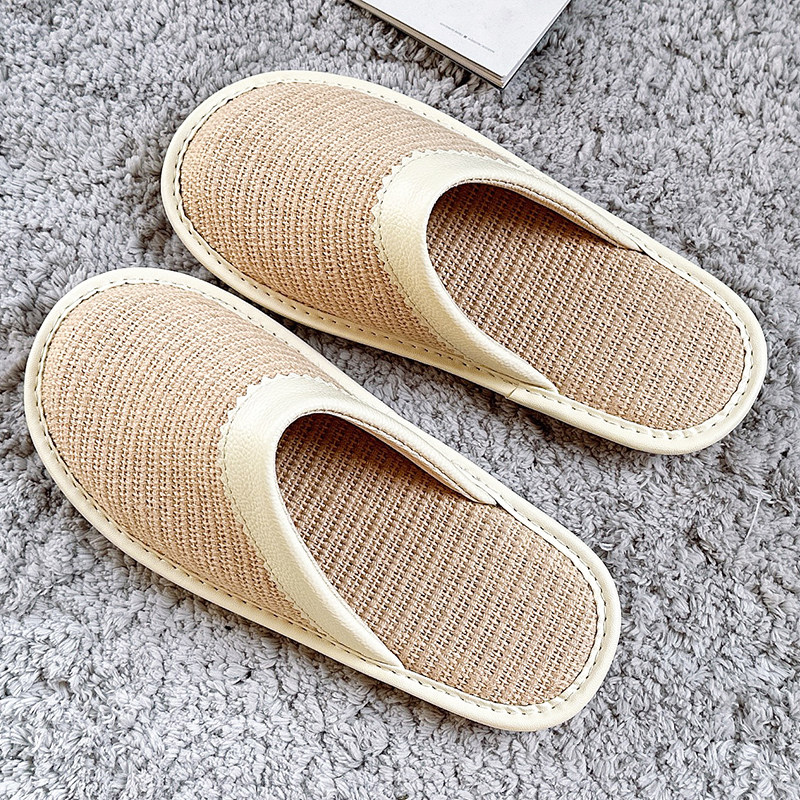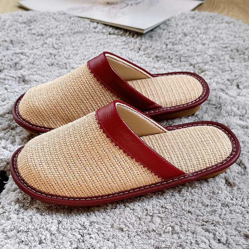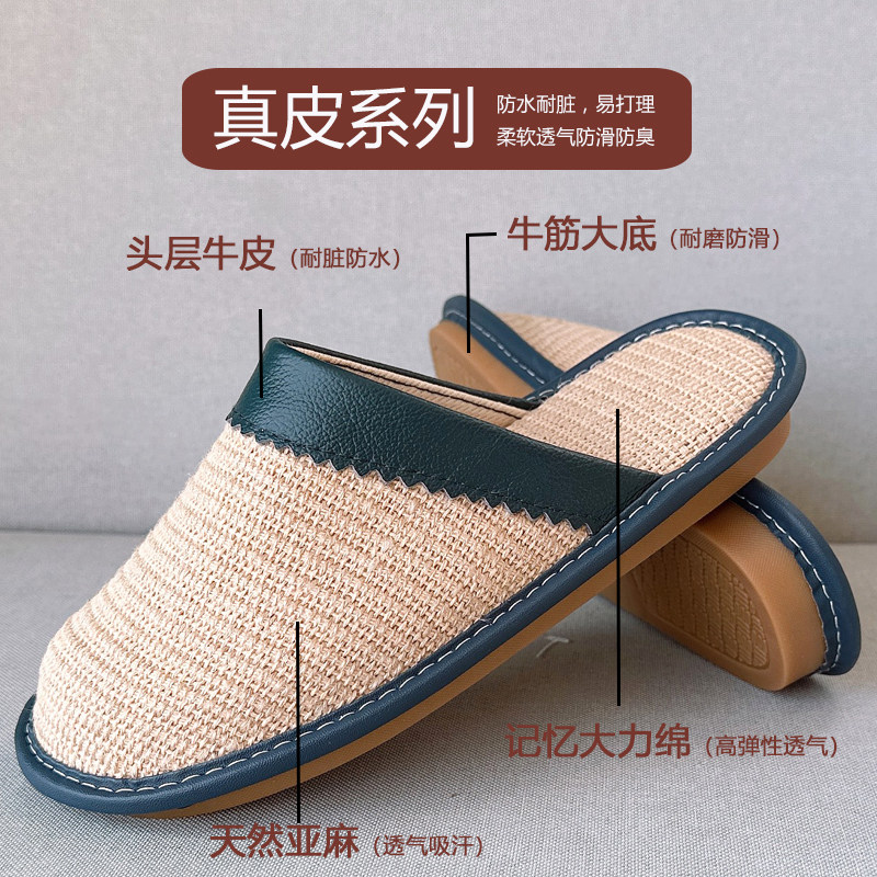 包头亚麻真皮拖鞋女士夏季室内居家家用防滑防臭2024新款四季木地