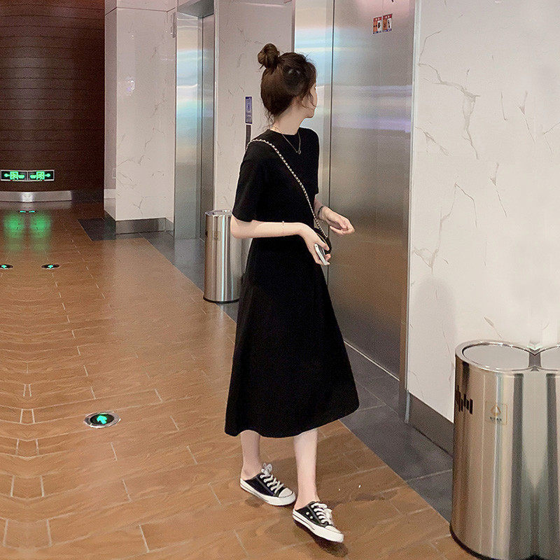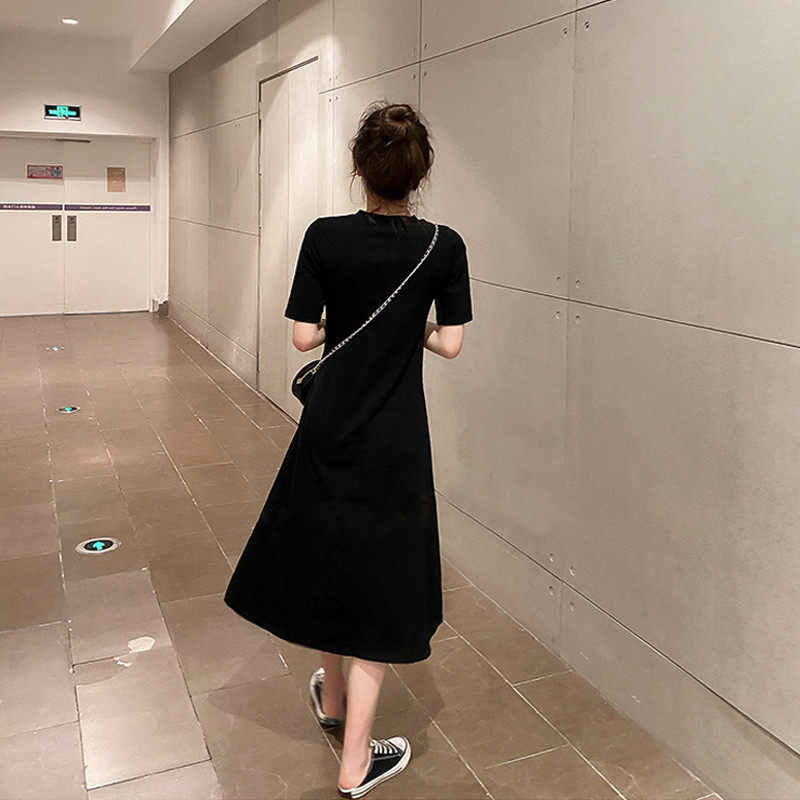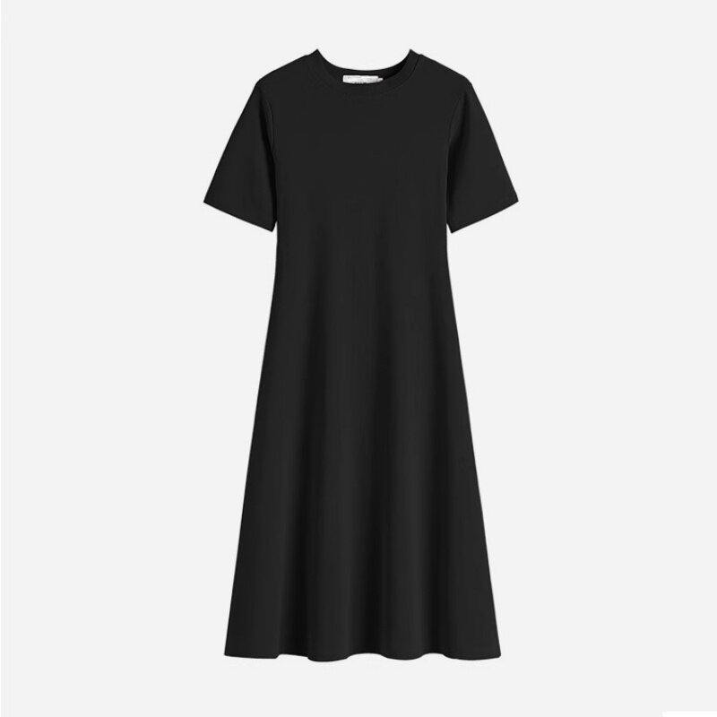黑色连衣裙高级感气质a字长裙女夏季2025新款收腰显瘦短袖休闲裙