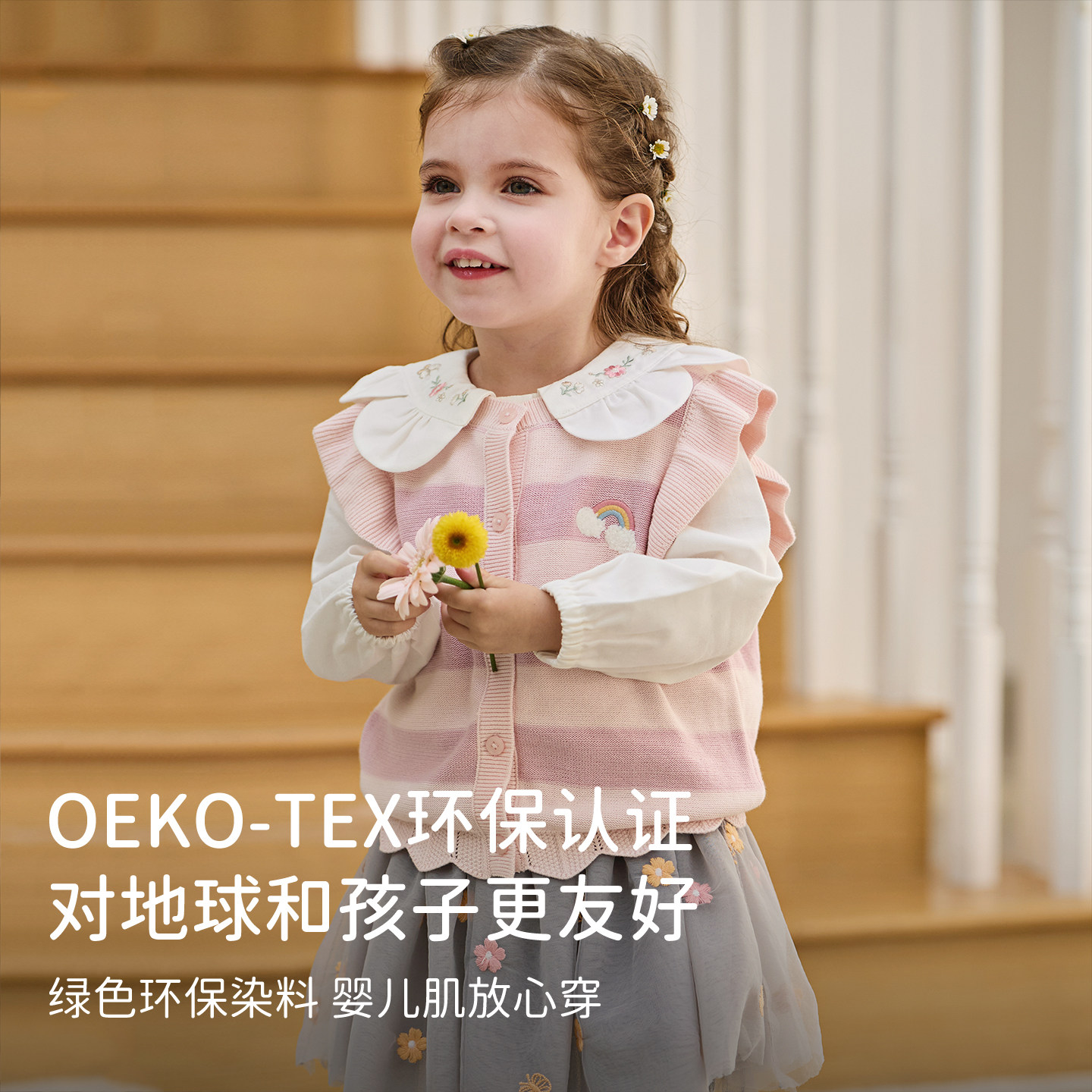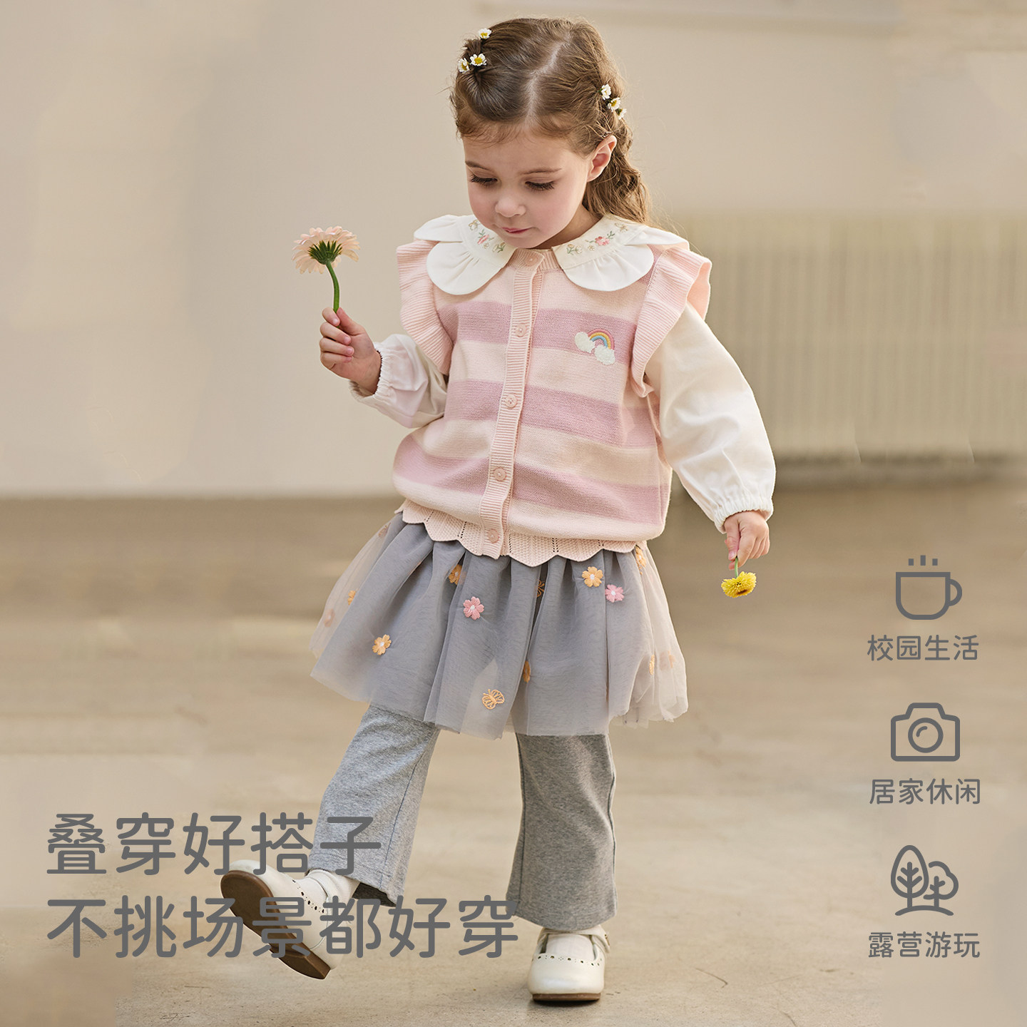 戴维贝拉儿童抗静电针织毛衣背心2026春装新女童宝宝纯棉条纹马甲