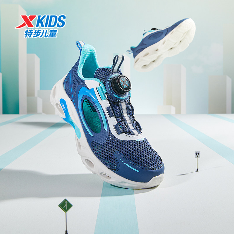 特步童鞋夏季新款中大童网面透气儿童运动鞋子男童旋钮扣软底跑鞋