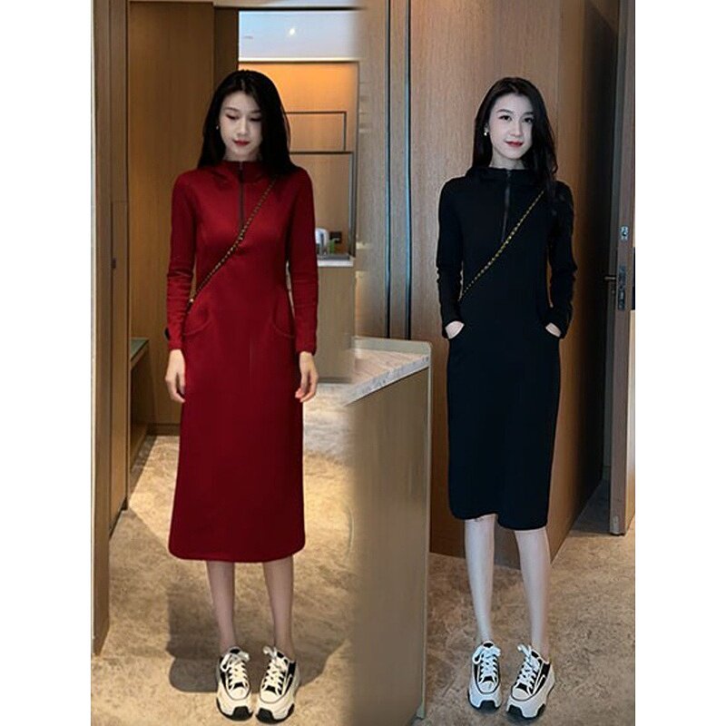 2024秋冬季新款长款卫衣裙女洋气遮肚子减龄显身材高级纯色连衣裙