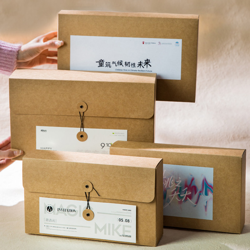 档案袋可定制文件袋T恤咖啡袋复古绑带绕信封袋A5牛皮纸加厚纸质大号收纳袋烫金印LOGO