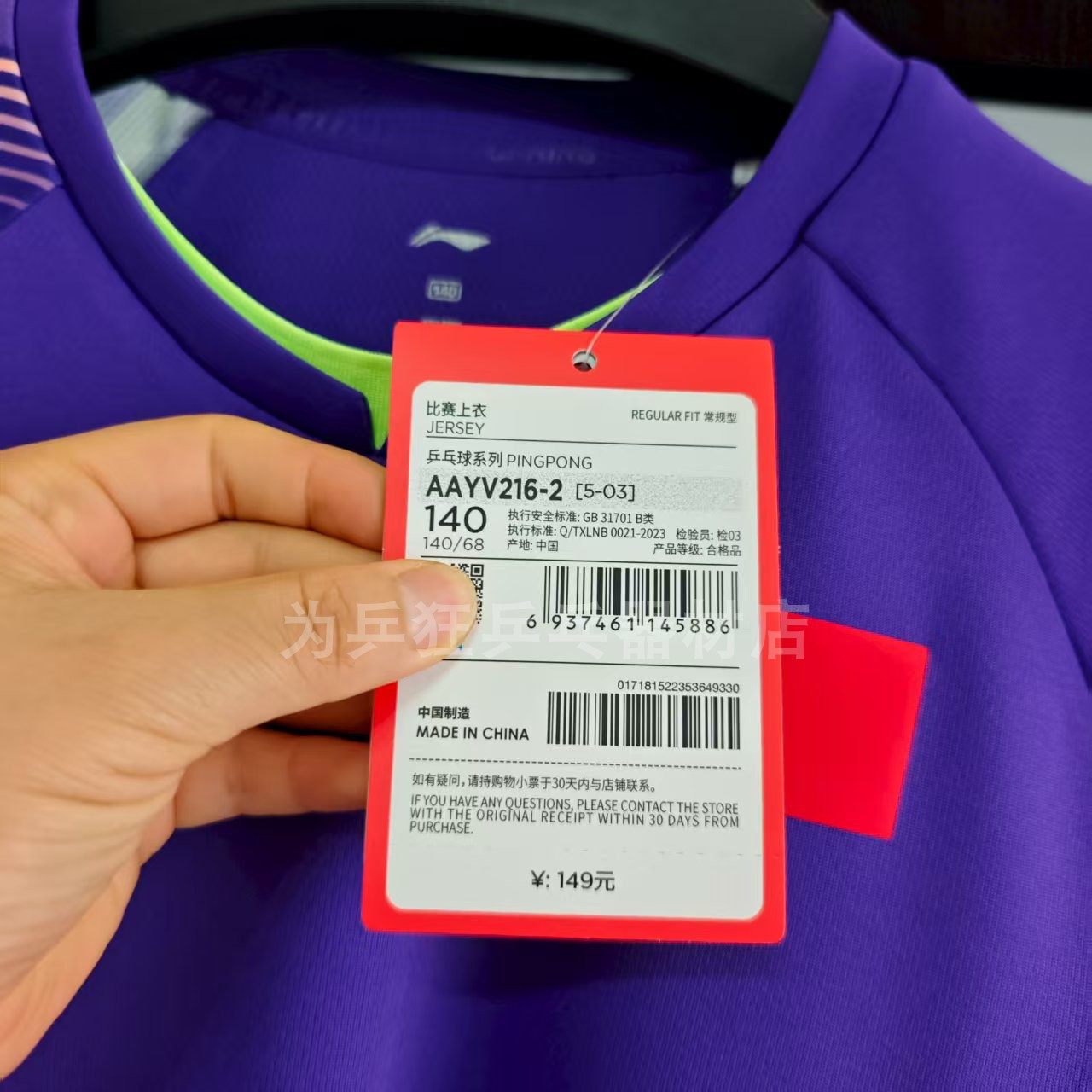 新款李宁儿童乒乓球比赛服上衣短袖童装运动速干训练服25