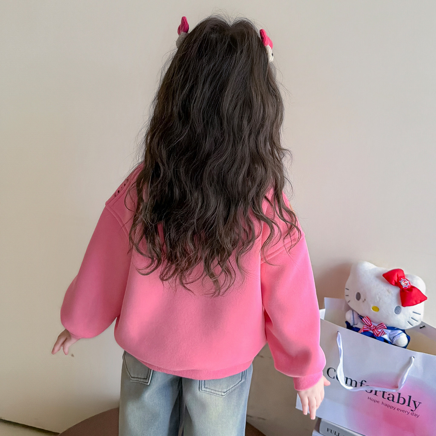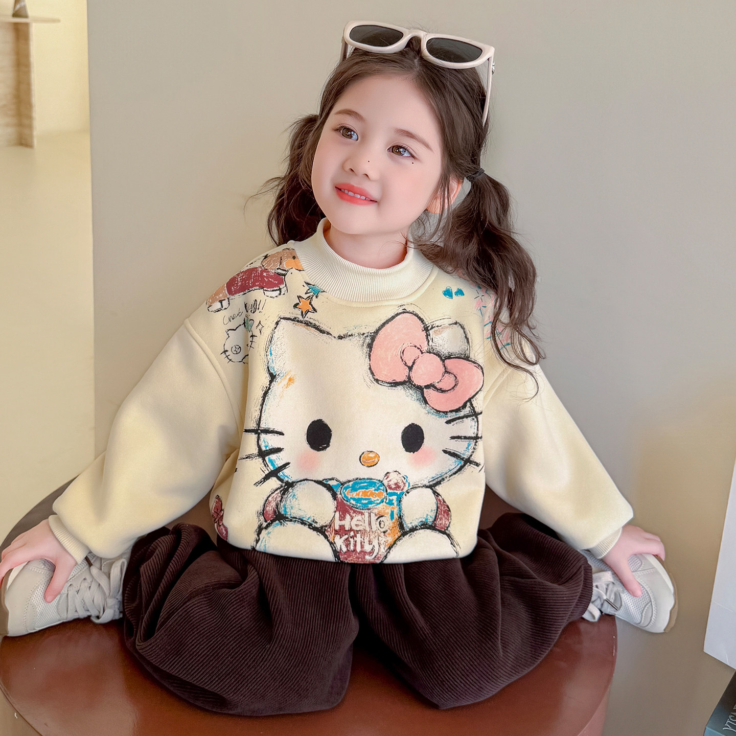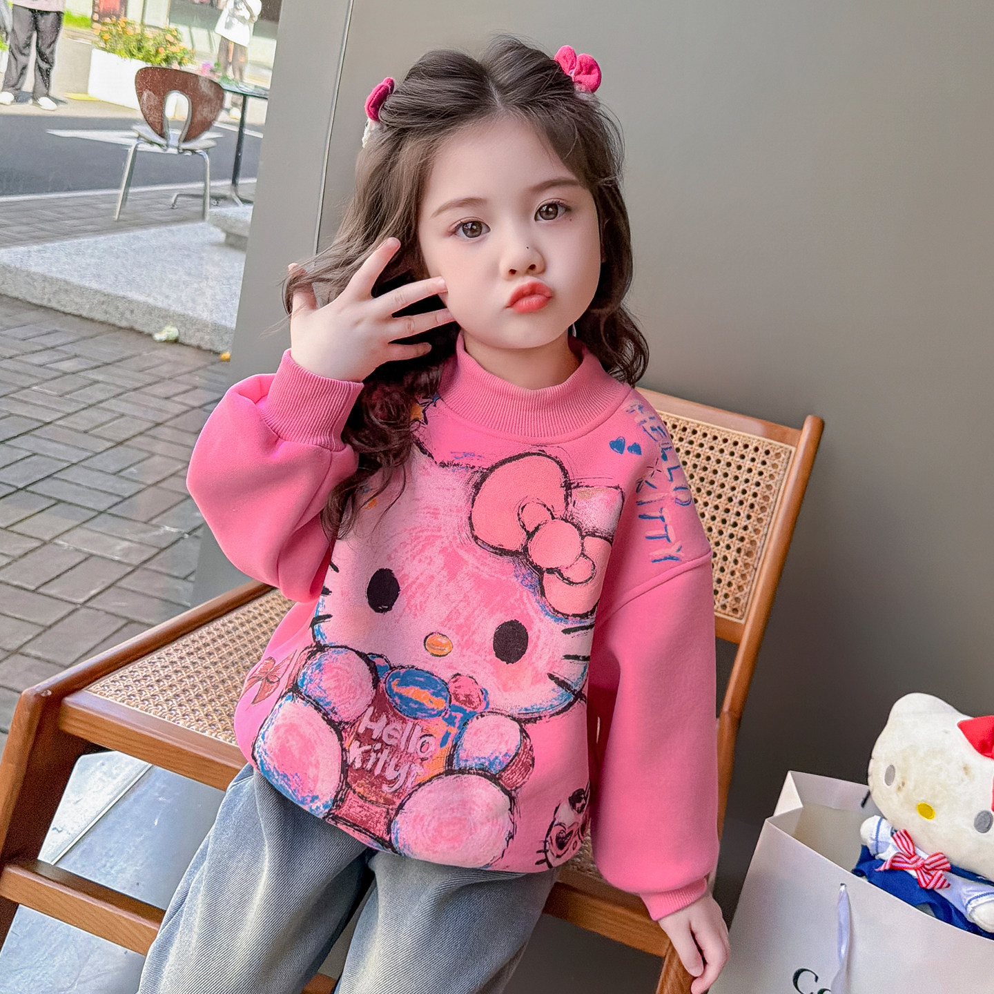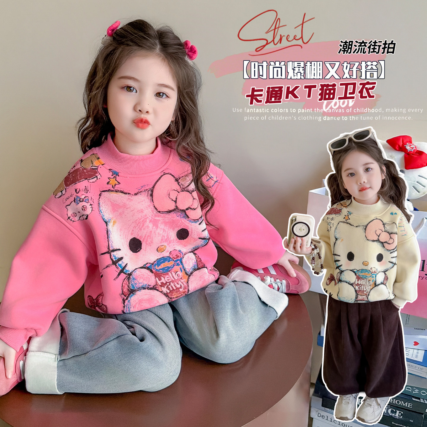女童春装2026新款春季儿童外套洋气百搭猫咪印花卫衣女宝宝上衣潮