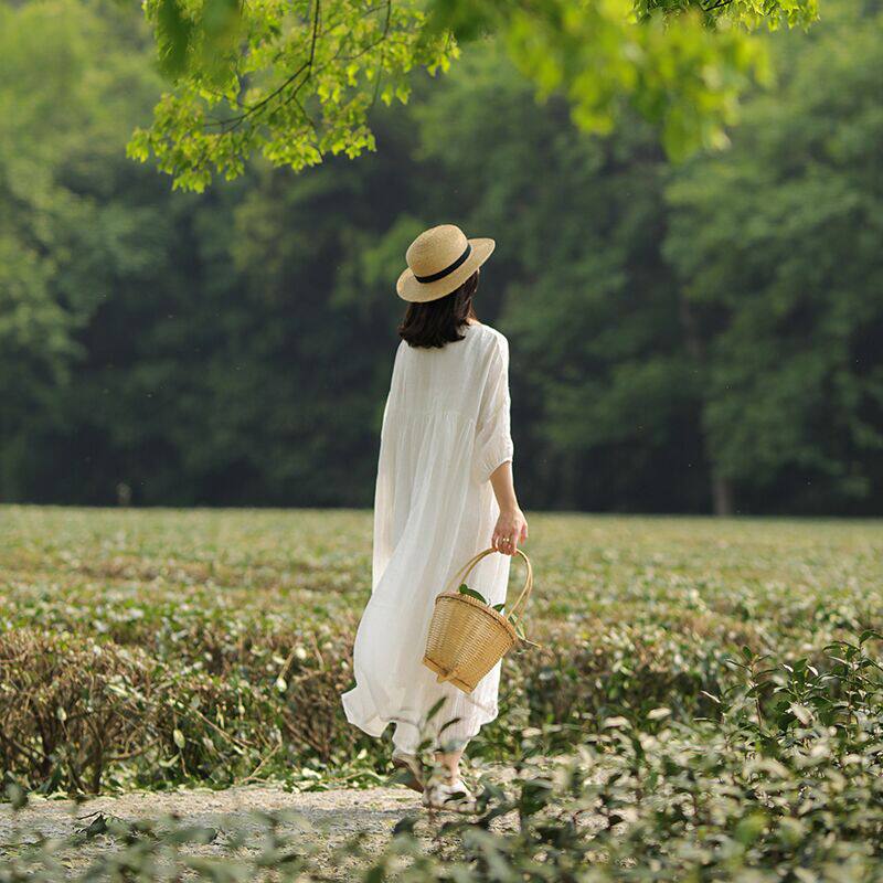 白色仙气亚麻连衣裙三亚海边度假气质飘逸长裙棉麻文艺宽松中长裙