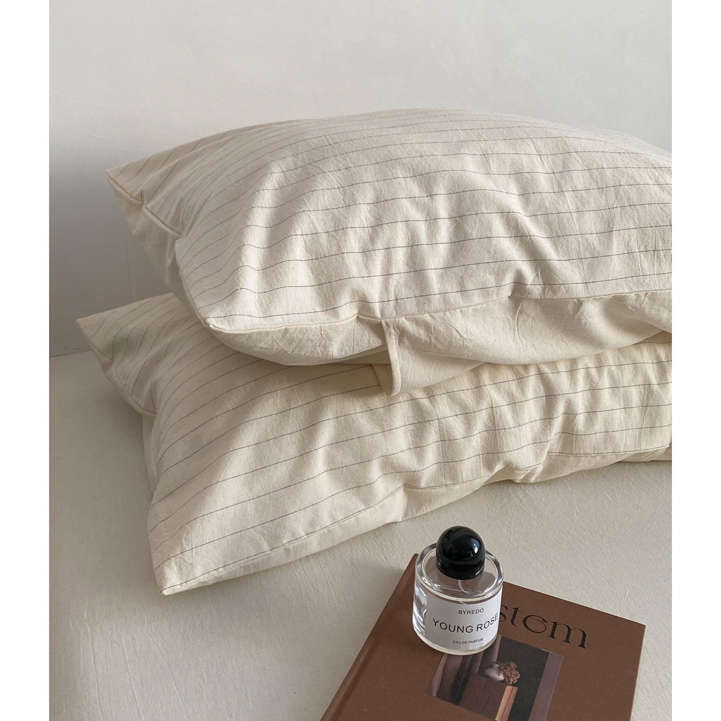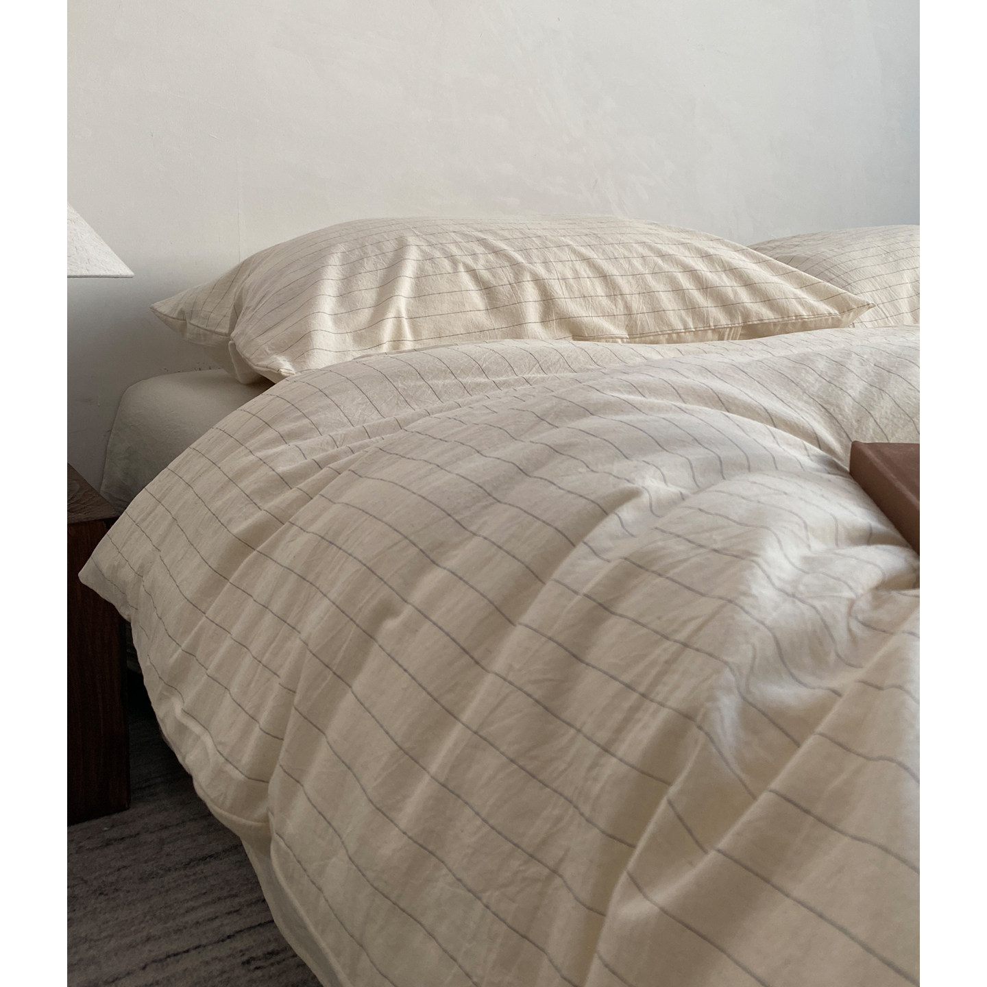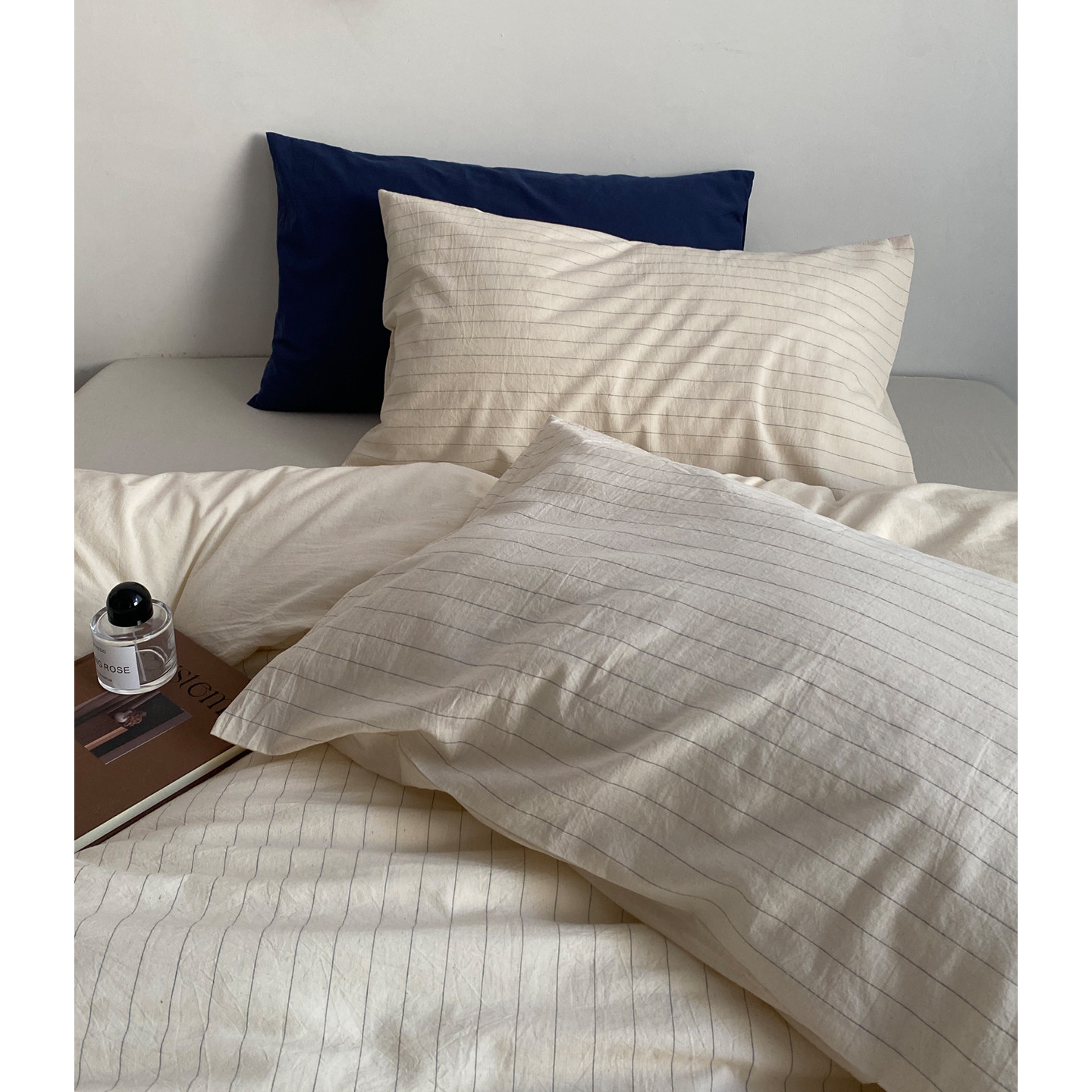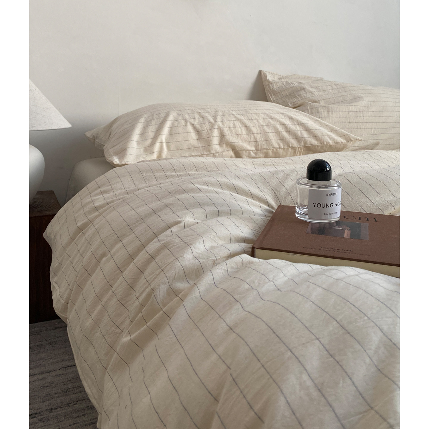 春夏薄款日式棉麻四件套 5%麻95%棉混纺条纹被套床单床上用品干爽