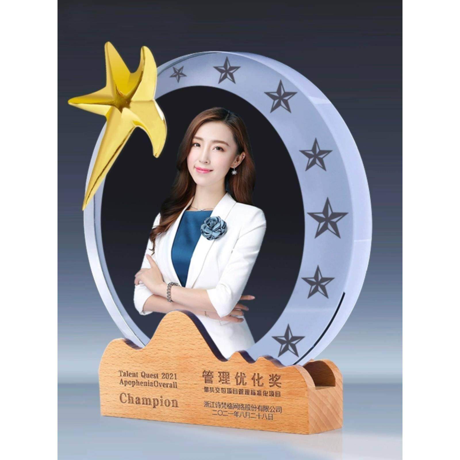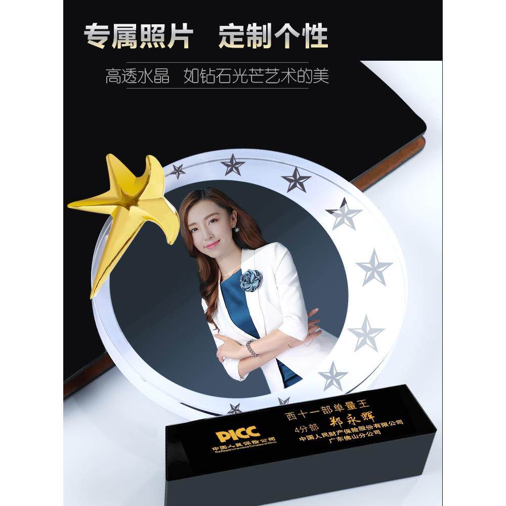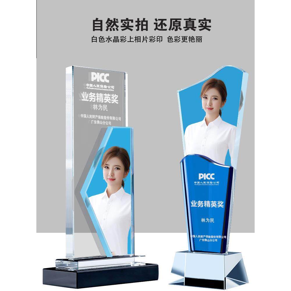 水晶奖杯定制照片带照片的人像奖杯水晶高档大气高级优秀员工免费