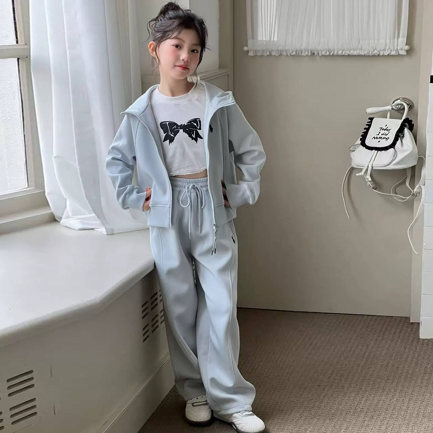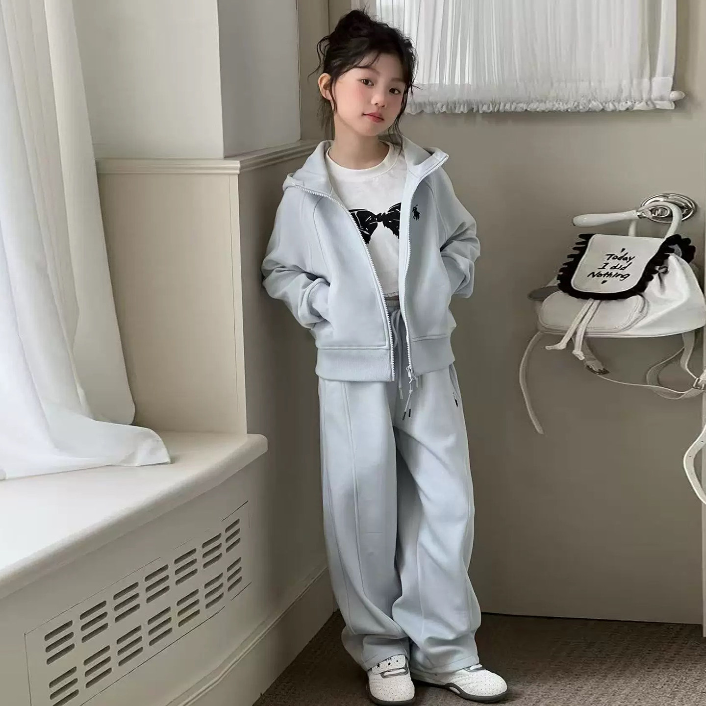 女童韩系风连帽套装2026春装新款时尚中大童百搭休闲网红两件套