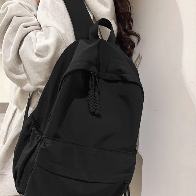 书包女生大学生简约黑色大容量初中生高中生2023新款背包女双肩包