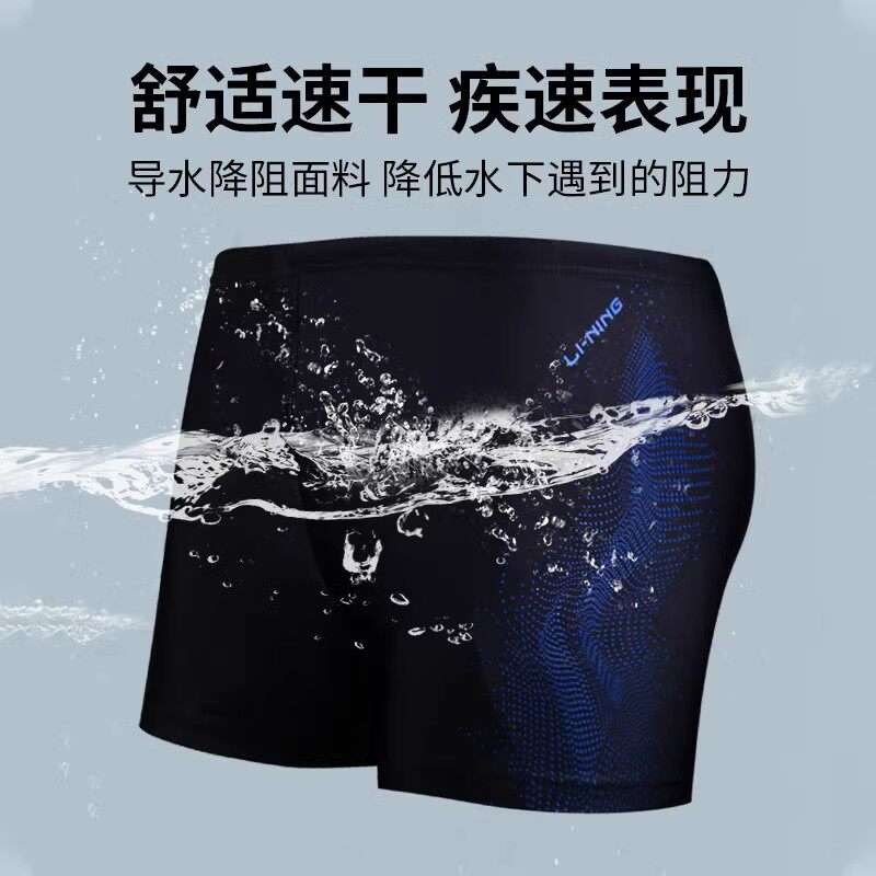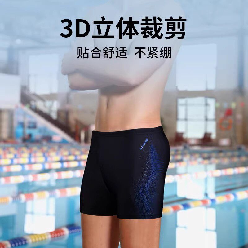 李宁泳裤男款平角速干专业竞速游泳装备防尴尬成人泳帽泳镜三件套