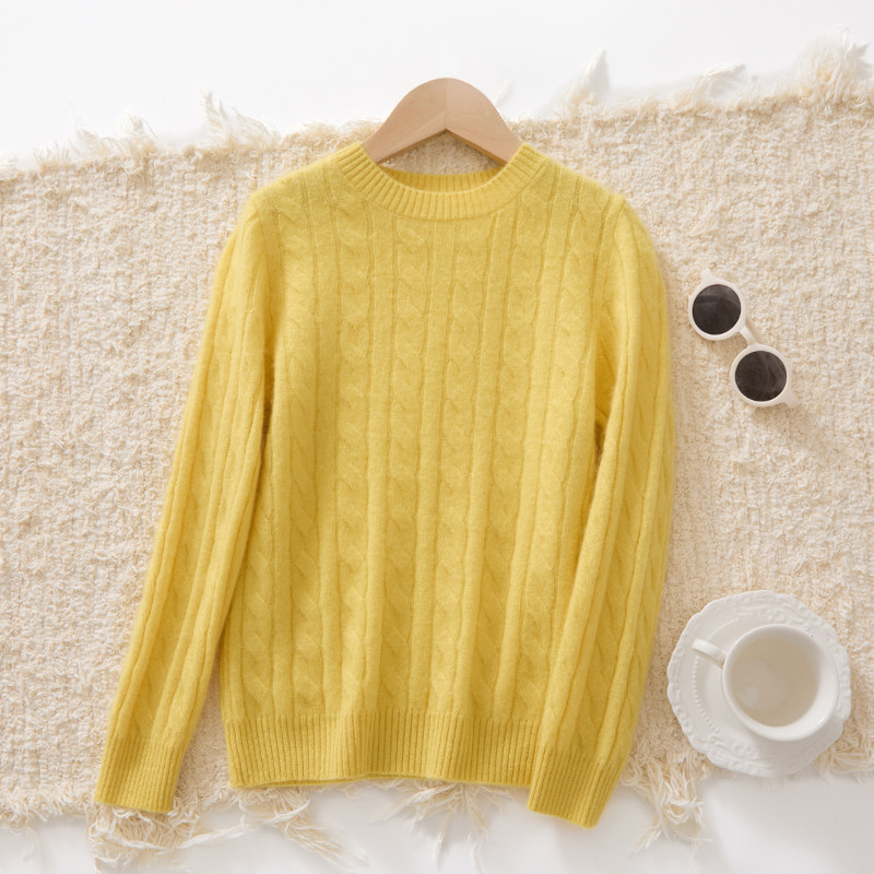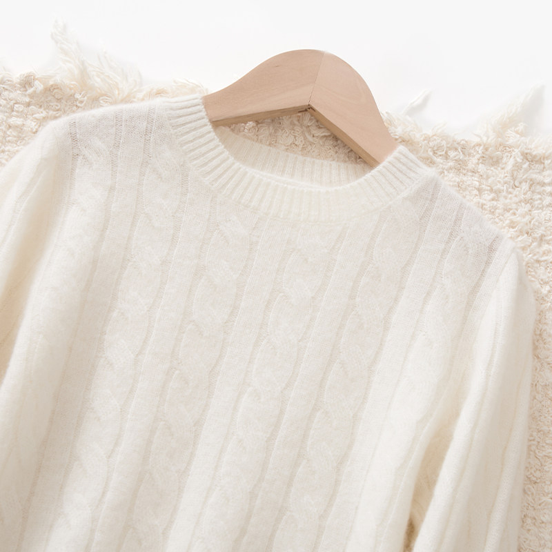 儿童秋冬新款纯山羊绒衫薄款圆领套头毛衣男女童复古麻花打底衫