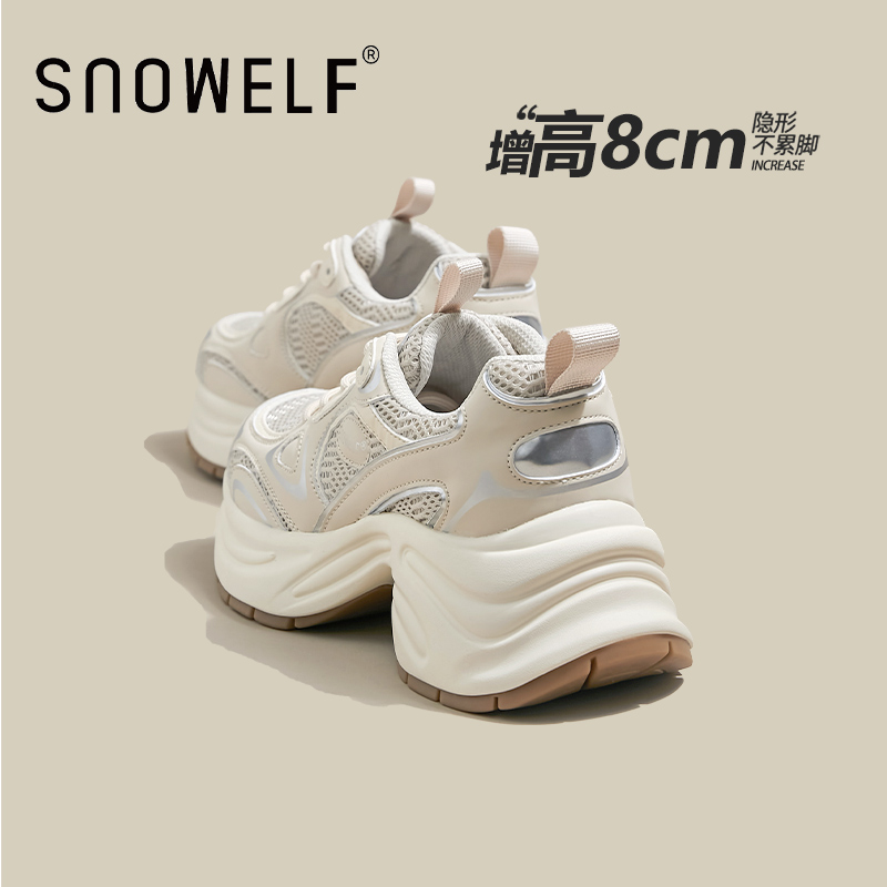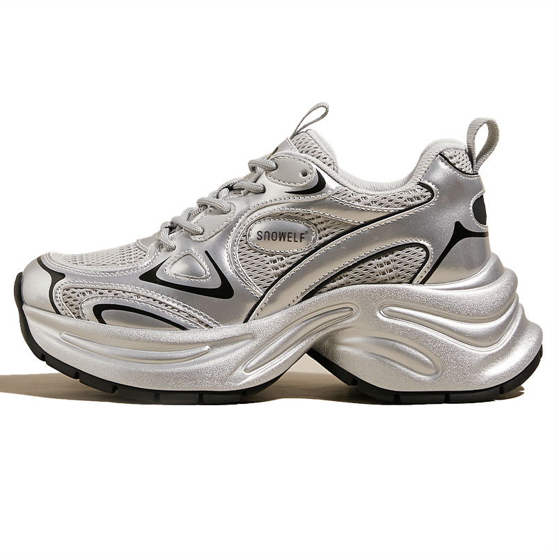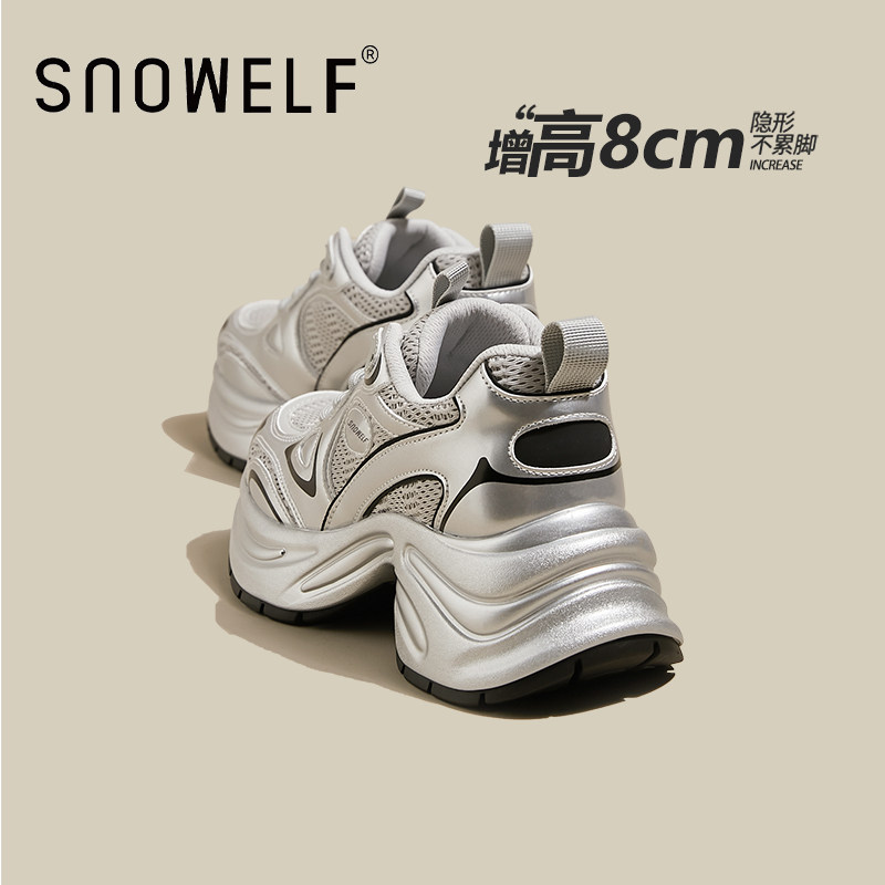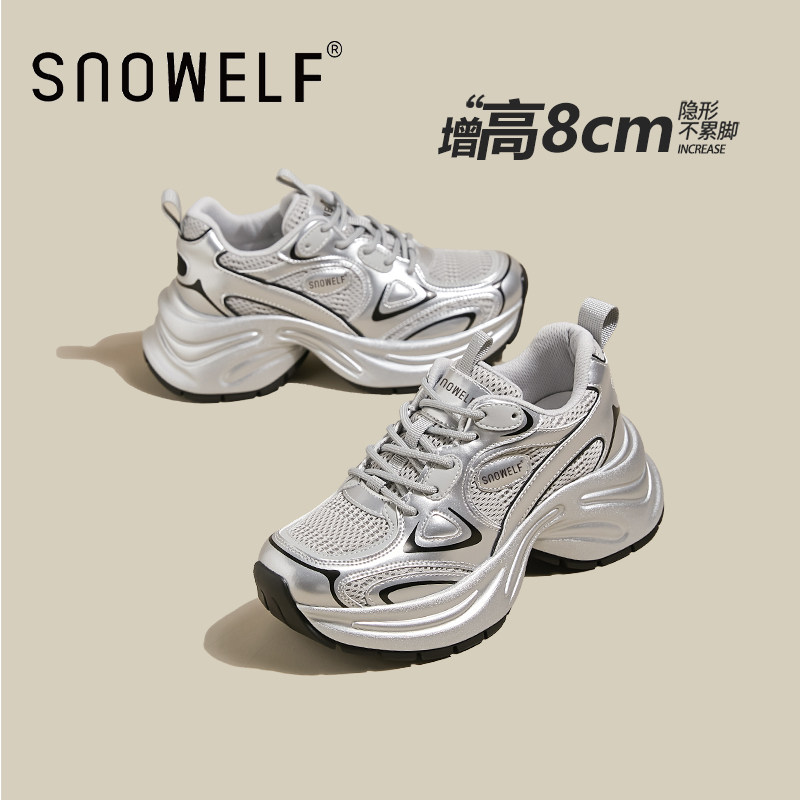 311线报网描述:8cm增高夏季穿搭小个子厚底鞋银色 白鹿同款