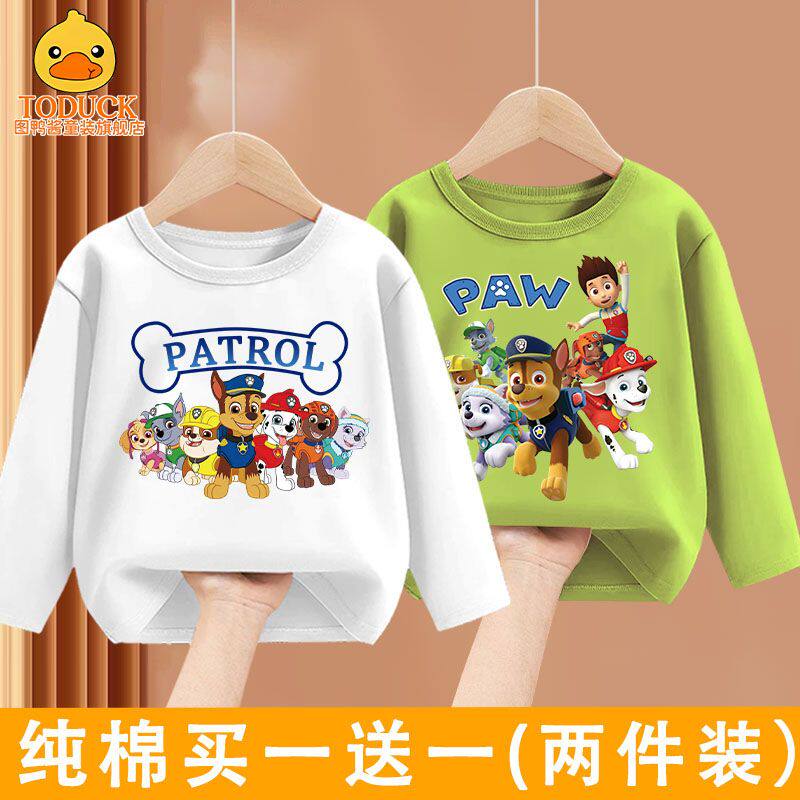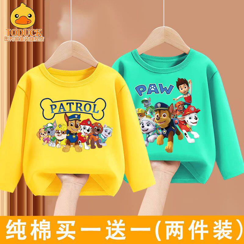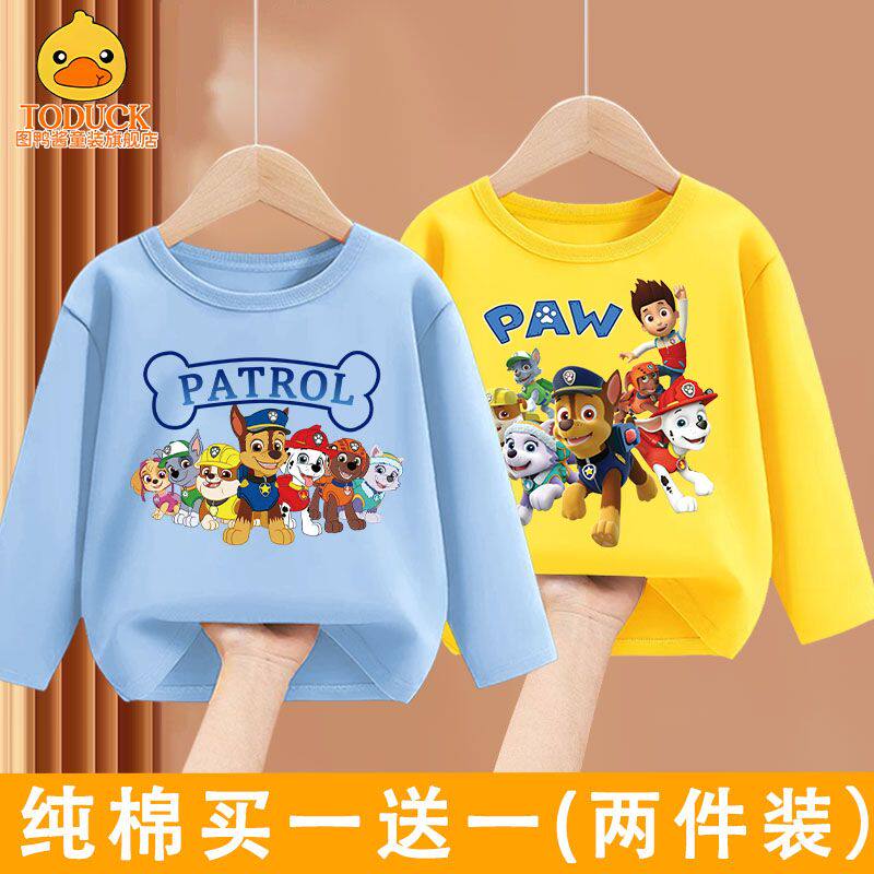 儿童纯棉T恤2026春秋潮款男女童长袖圆领上衣薄款洋气百搭打底t