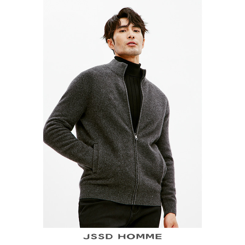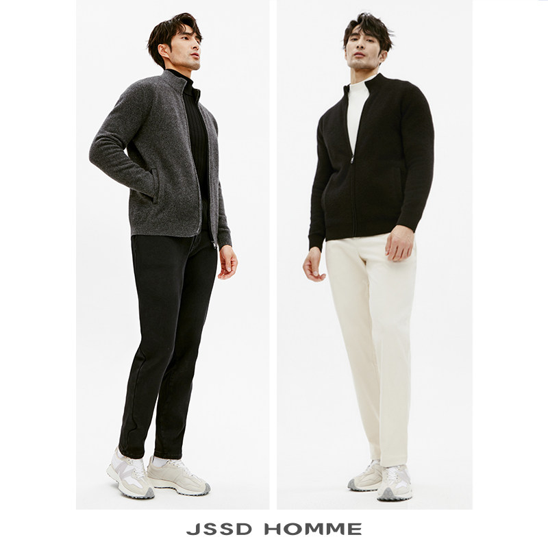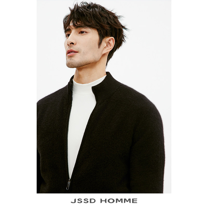 JSSD HOMME 冬季新款狐狸绒男士针织毛衫半高领针织开衫外套男款