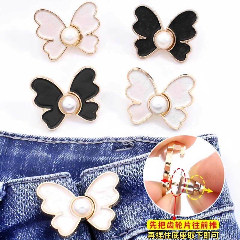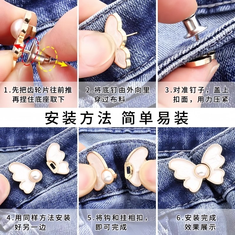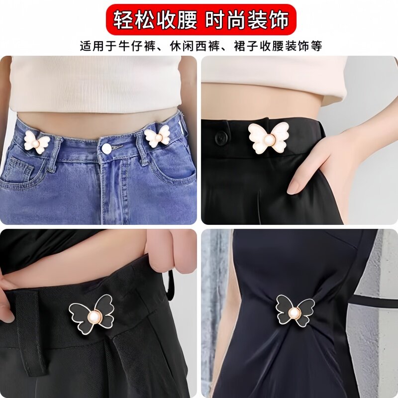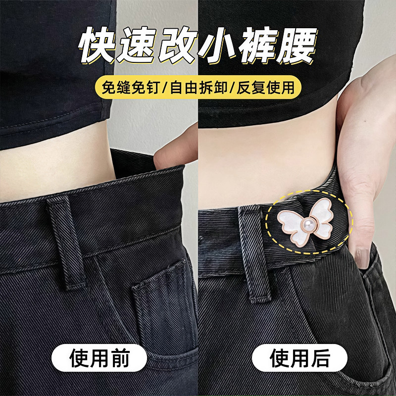 蝴蝶收腰扣子免打孔裤子裙子牛仔裤腰围改小固定神器珍珠收紧纽扣