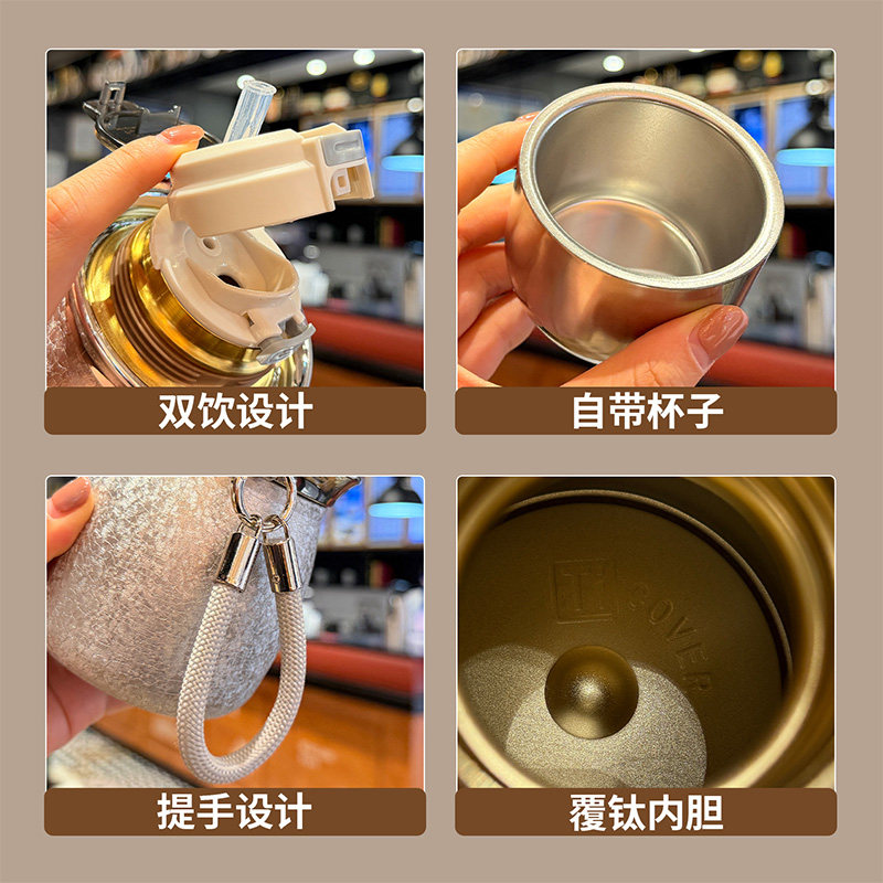 轻奢高档精致钛杯女士高颜值2025新款带吸管小巧便携不锈钢保温杯