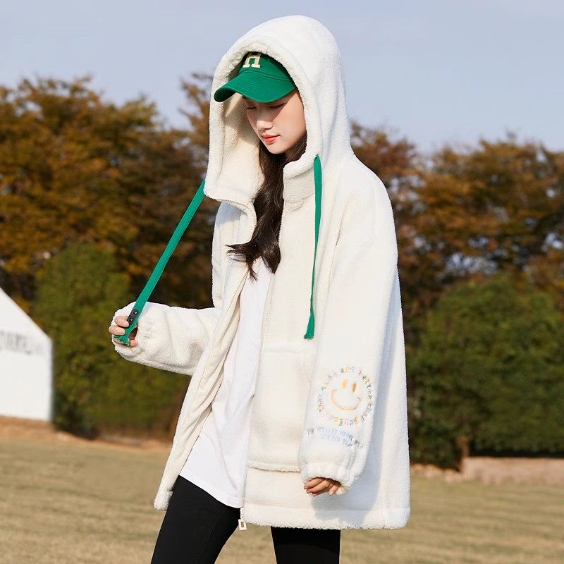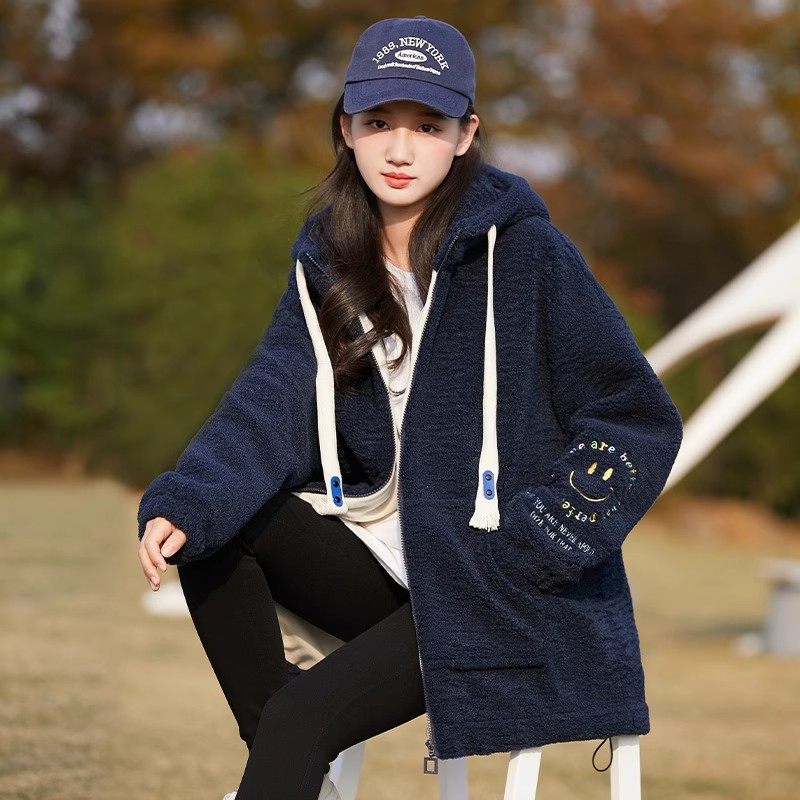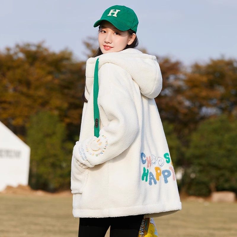 少女羊羔绒外套秋冬款2026新款初中生学院风冬季棉服加厚女孩冬装