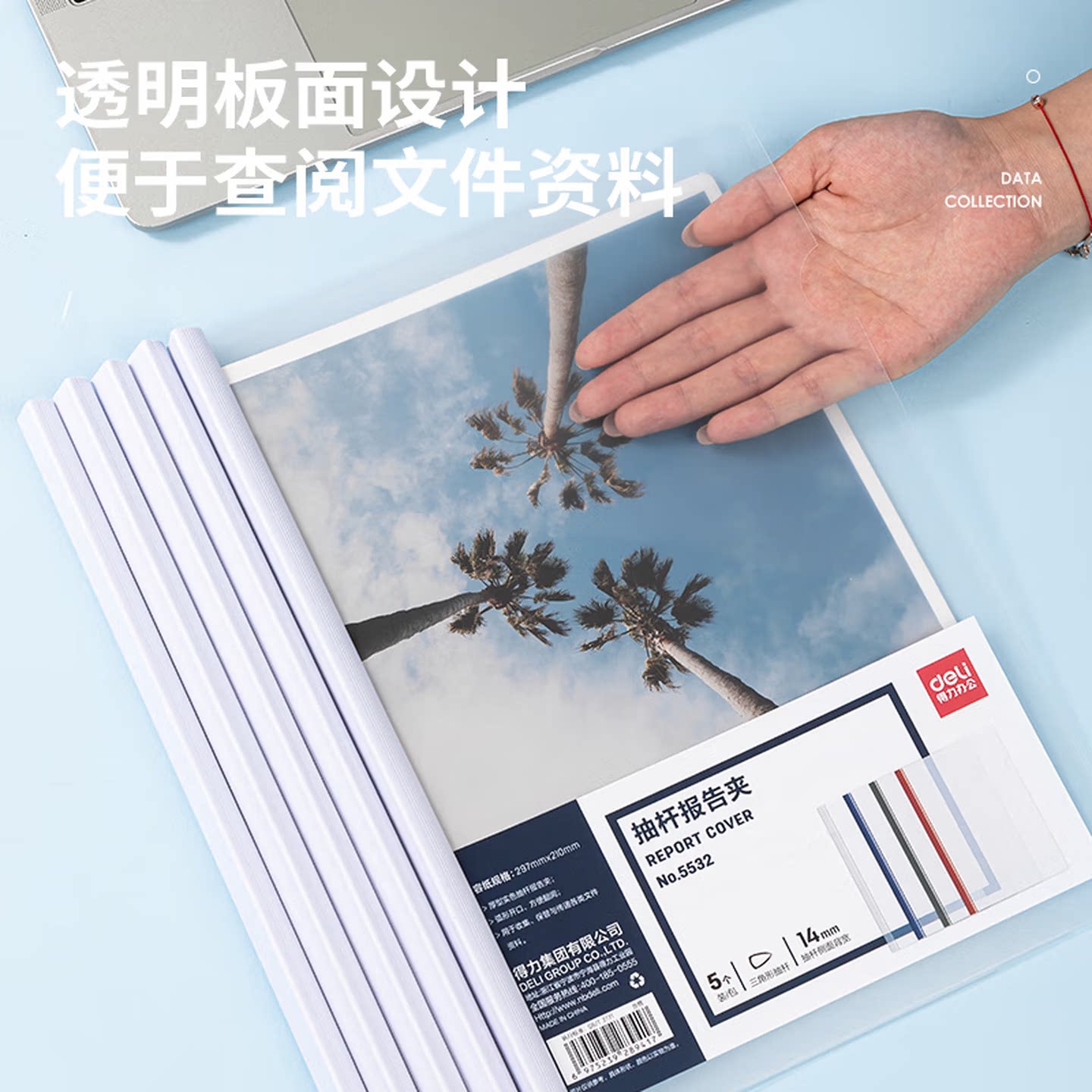 得力(deli)5只A4加宽加厚14mm透明拉杆抽杆夹文件夹 资料收纳5532