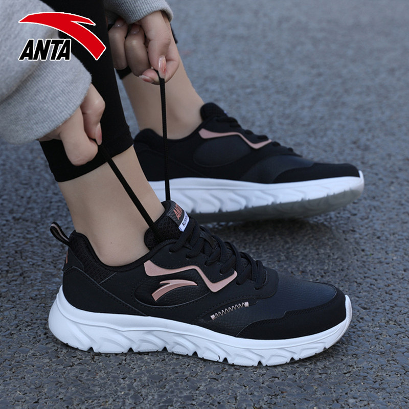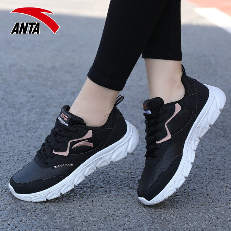 安踏女鞋夏季皮面防水跑步运动鞋女款官方旗舰减震软底休闲鞋