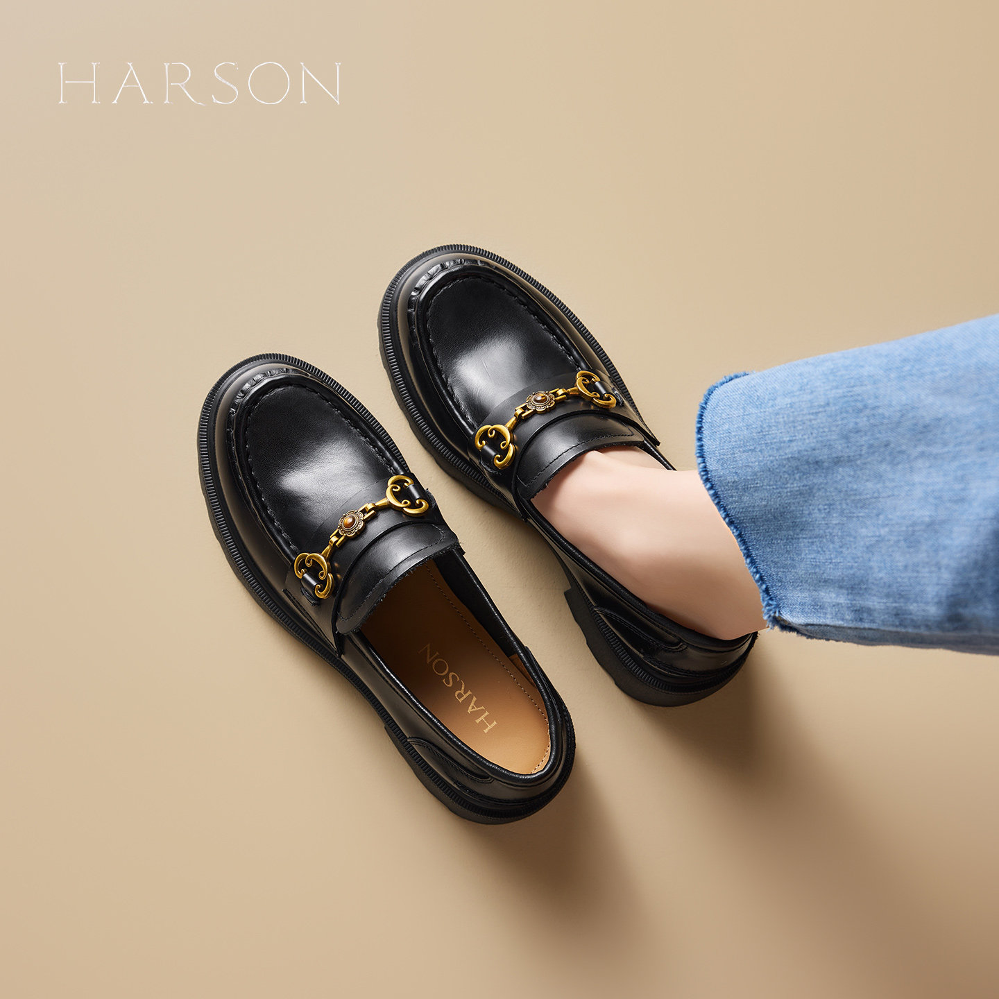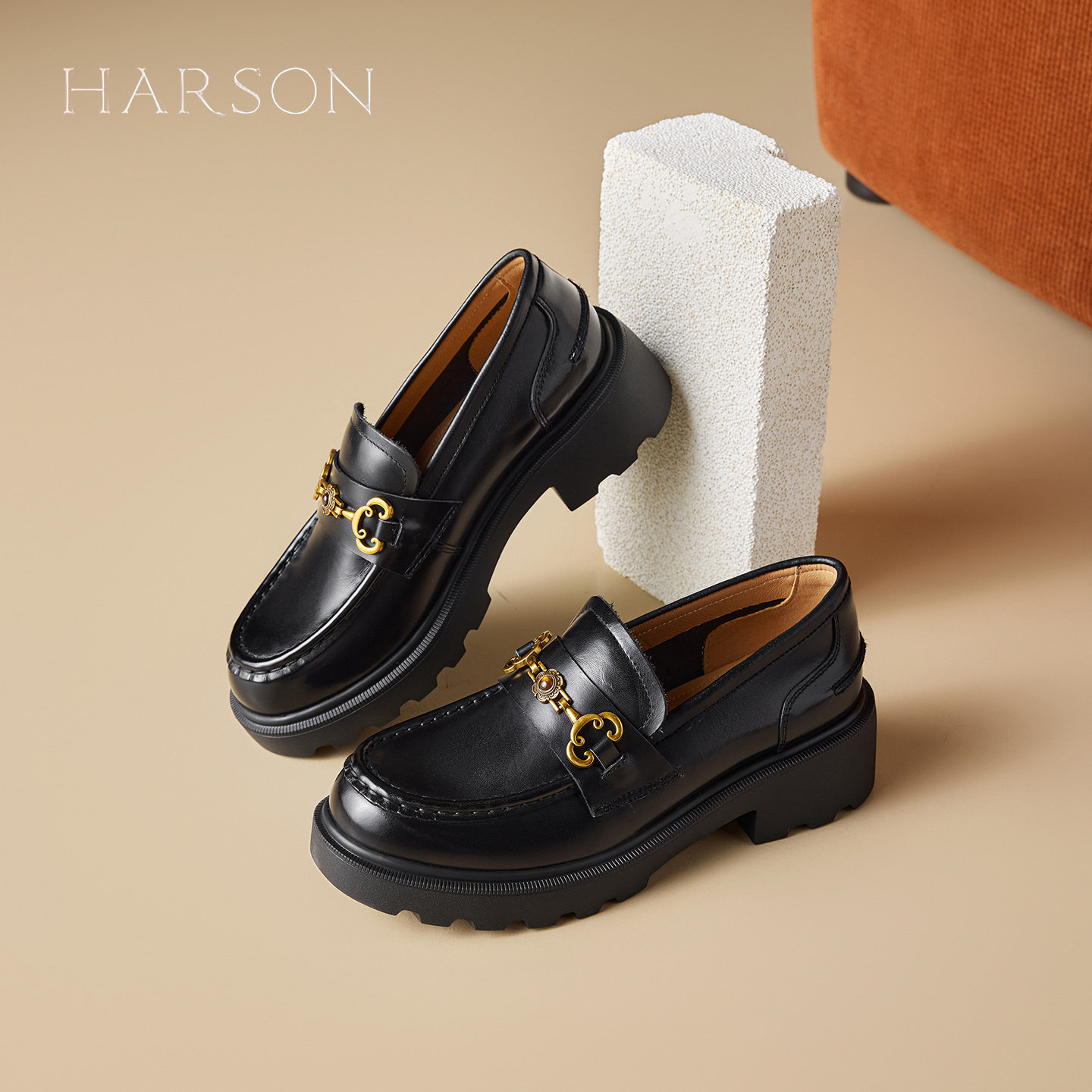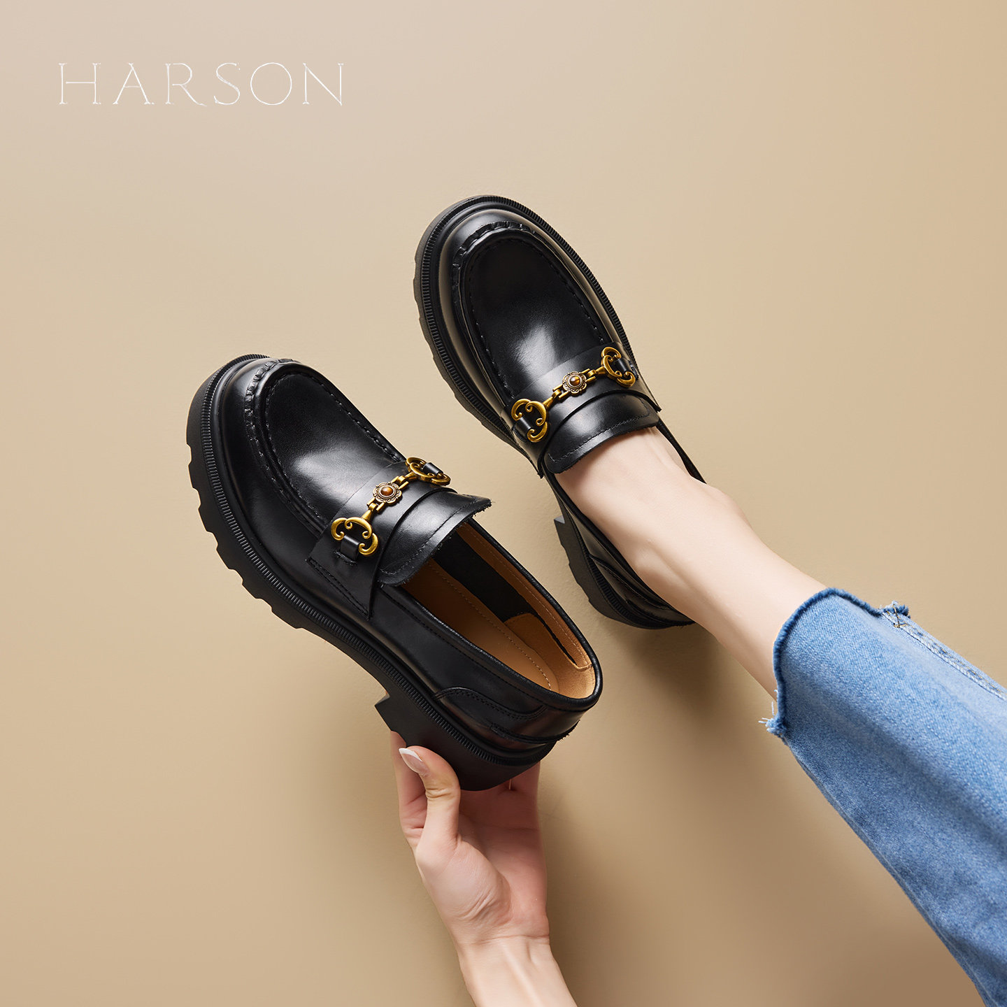 哈森英伦风厚底真皮乐福鞋女2026春季新款增高通勤时装小皮鞋单鞋