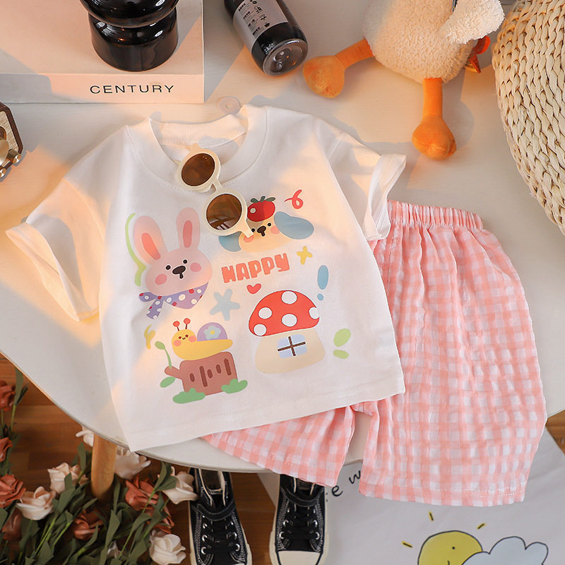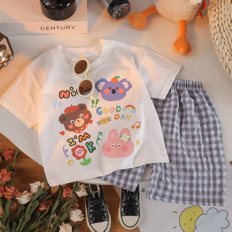 儿童洋气短袖套装夏季男女童纯棉T恤婴幼儿宝宝可爱韩版衣服短裤