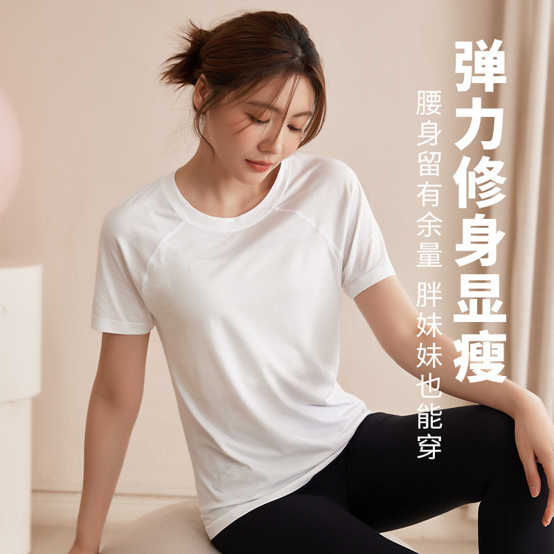 大码运动短袖t恤女夏季胖MM健身服速干衣200斤跑步宽松瑜伽服上衣