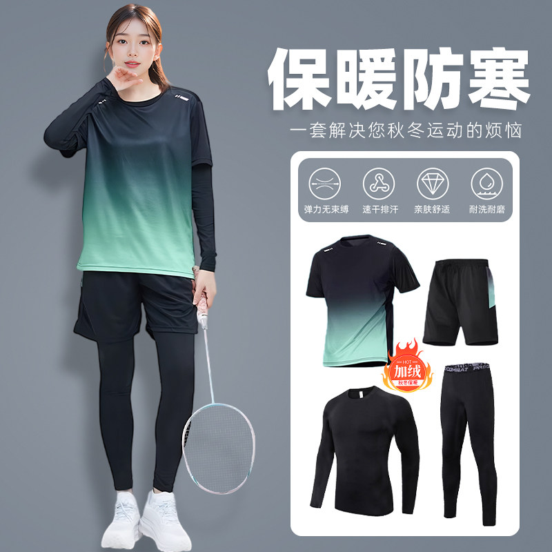 羽毛球服男秋冬季健身套装长袖排球速干衣乒乓球篮球训练装备定制