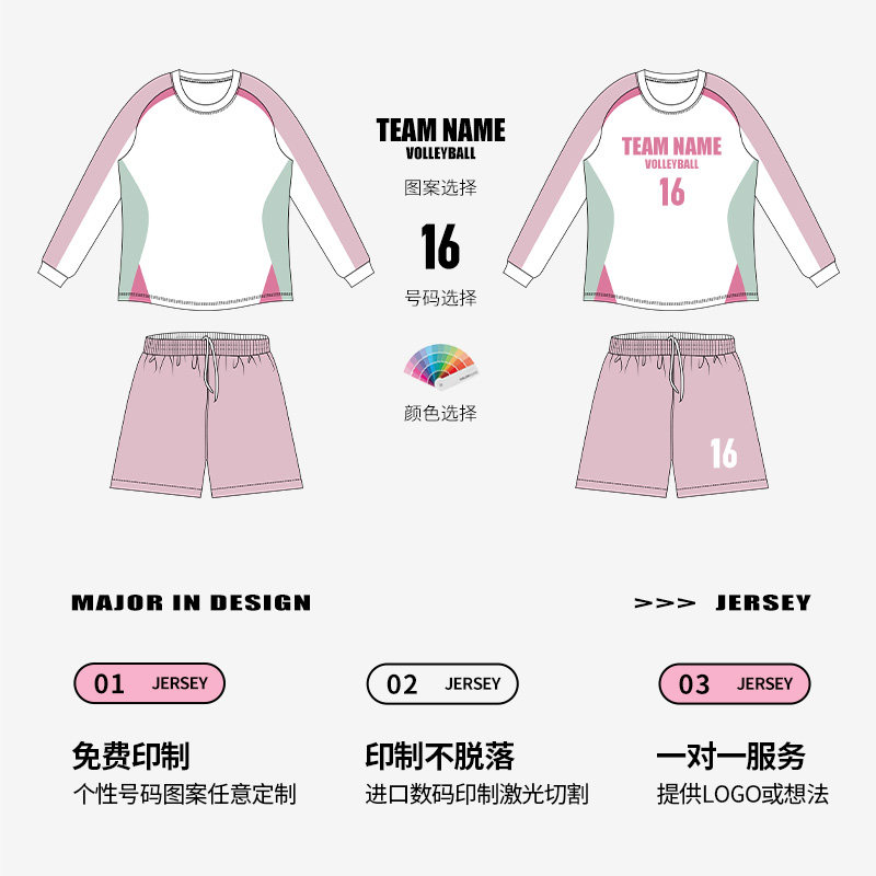 免费定制排球服男女款套装数码印长袖气排球衣专业比赛训练团队服
