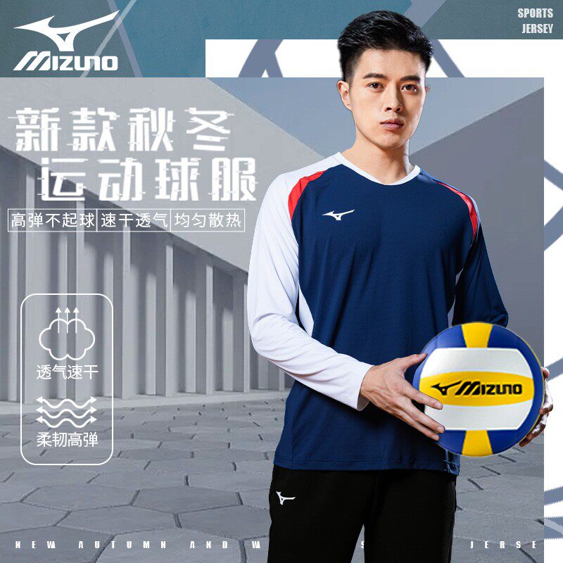 美津浓羽毛球服排球服长袖速干衣运动长袖T恤训练服男女秋冬