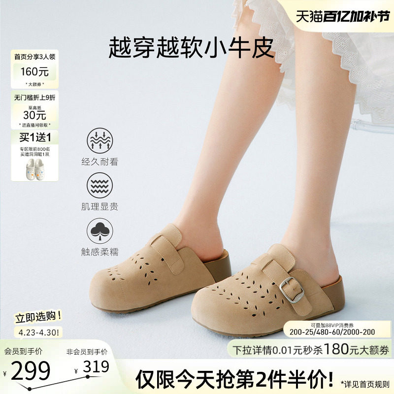 百思图2026夏季新款真皮厚底勃肯鞋休闲外穿女包头半拖鞋D5006BH6