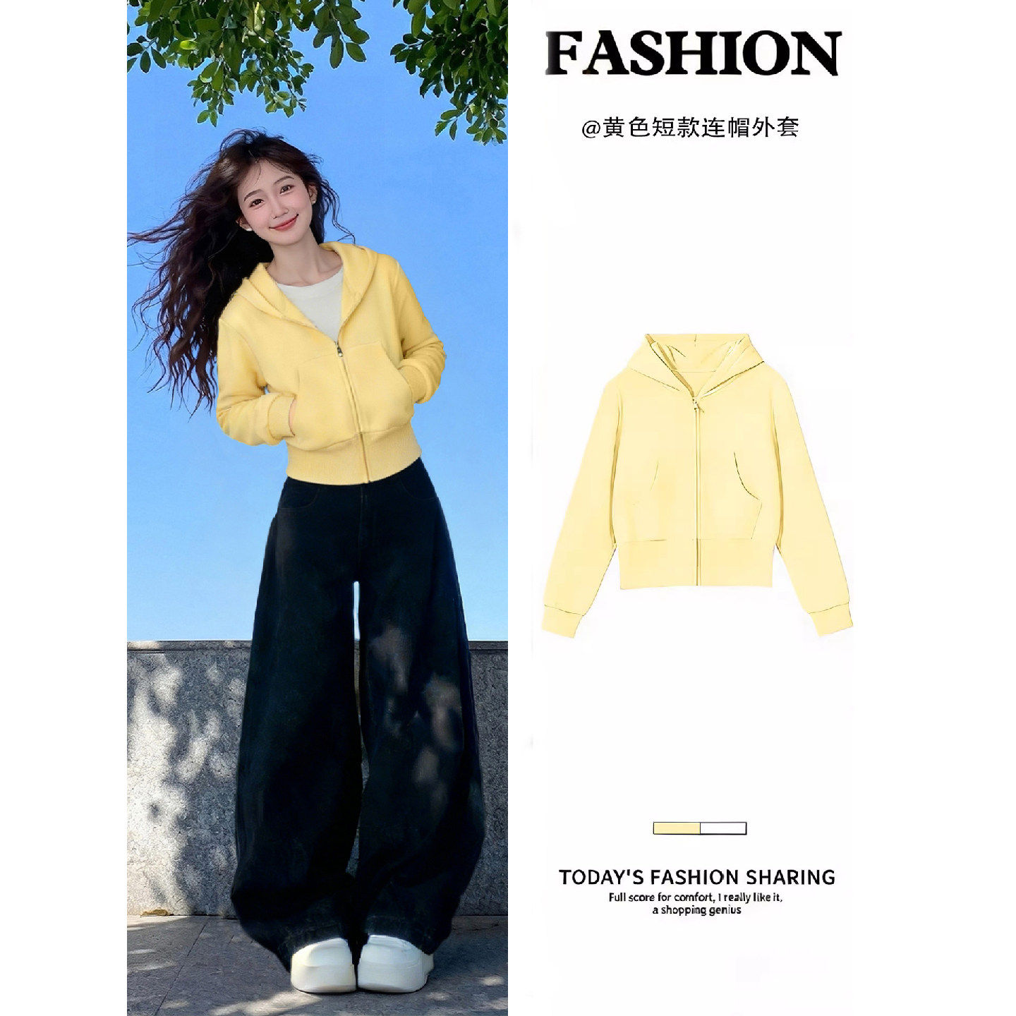 黄色短款卫衣外套女款春装修身正肩收腰漂亮小上衣早春季韩系穿搭