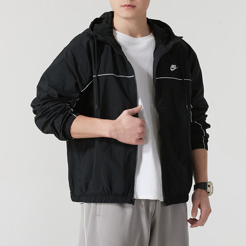 Nike耐克春季新款外套男子美式夹克薄款运动服黑色复古上衣HJ2013