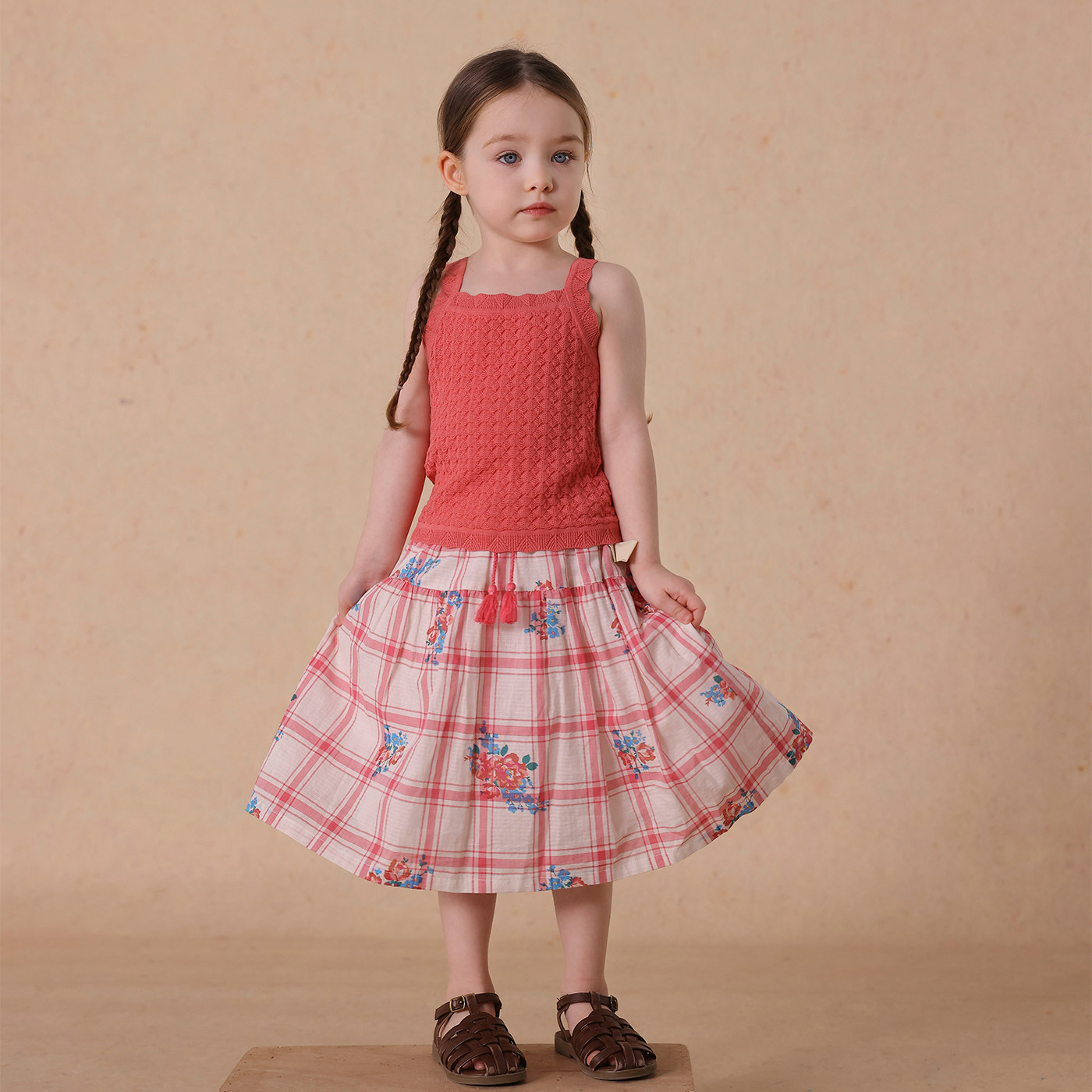 允儿妈女童2025复古碎花格子半身裙宝宝幼儿园夏季洋气短裙裙子潮