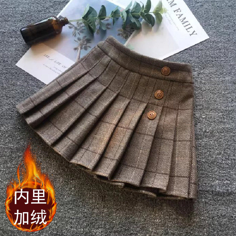 女童毛呢半身裙格子儿童百褶裙春秋装短裙子宝宝JK学院风大童加绒