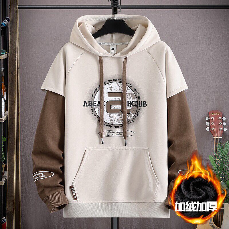13初中学生连帽假两件卫衣男孩秋冬装15加绒16岁大童潮流纯棉上衣