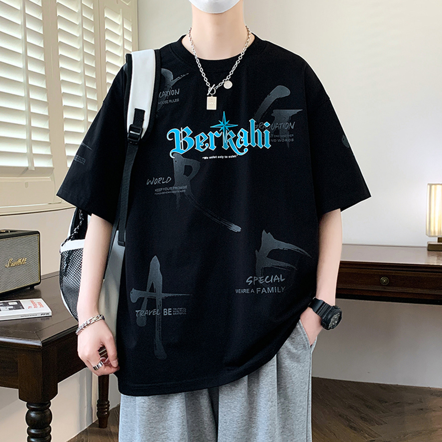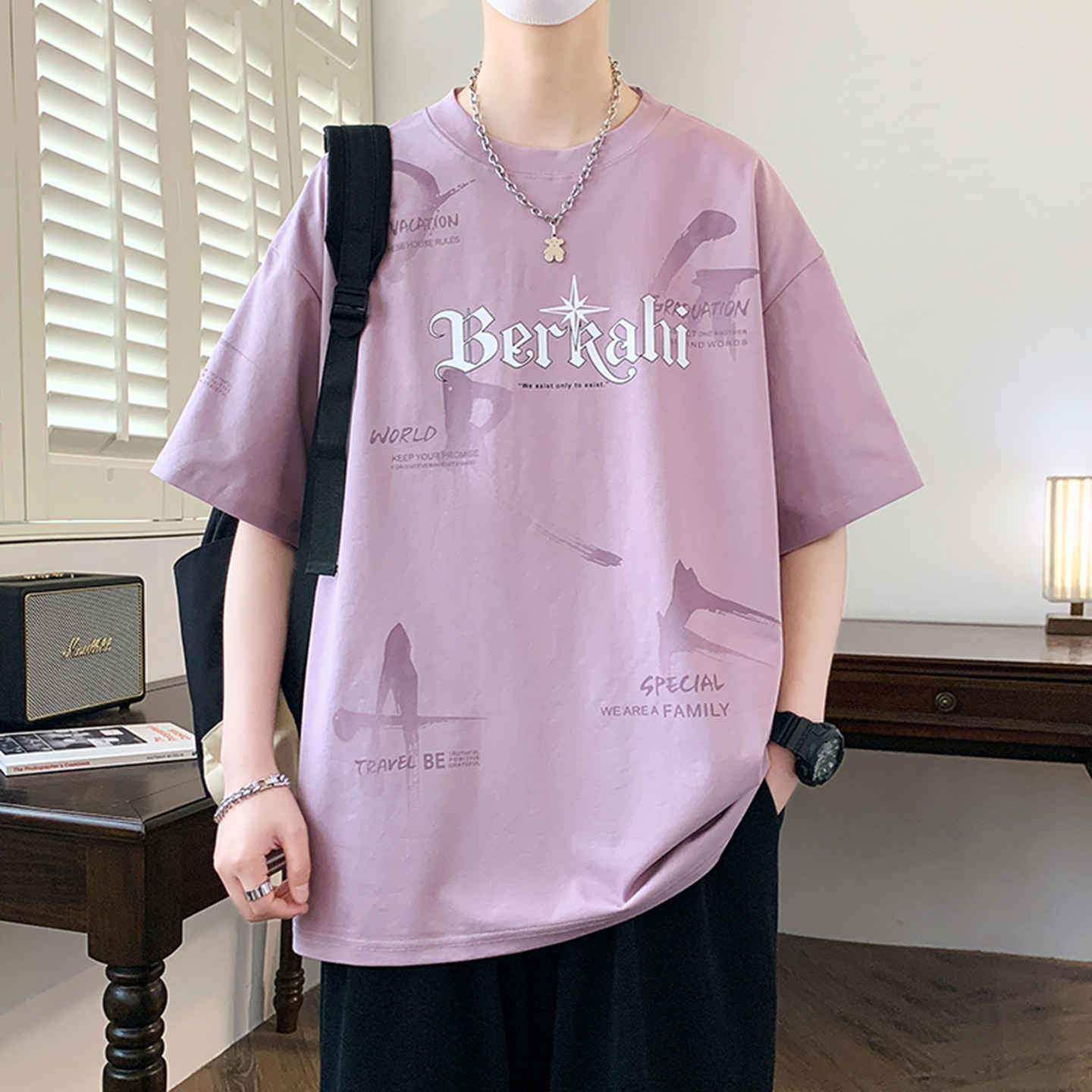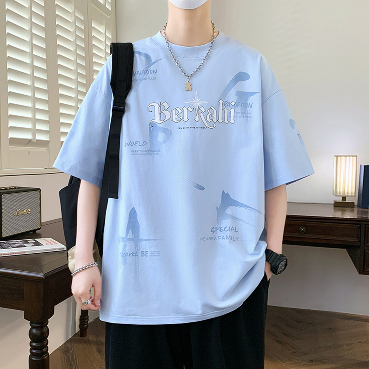 夏季新款短袖t恤男孩初中高中学生潮流帅气青少年大童纯棉上衣服
