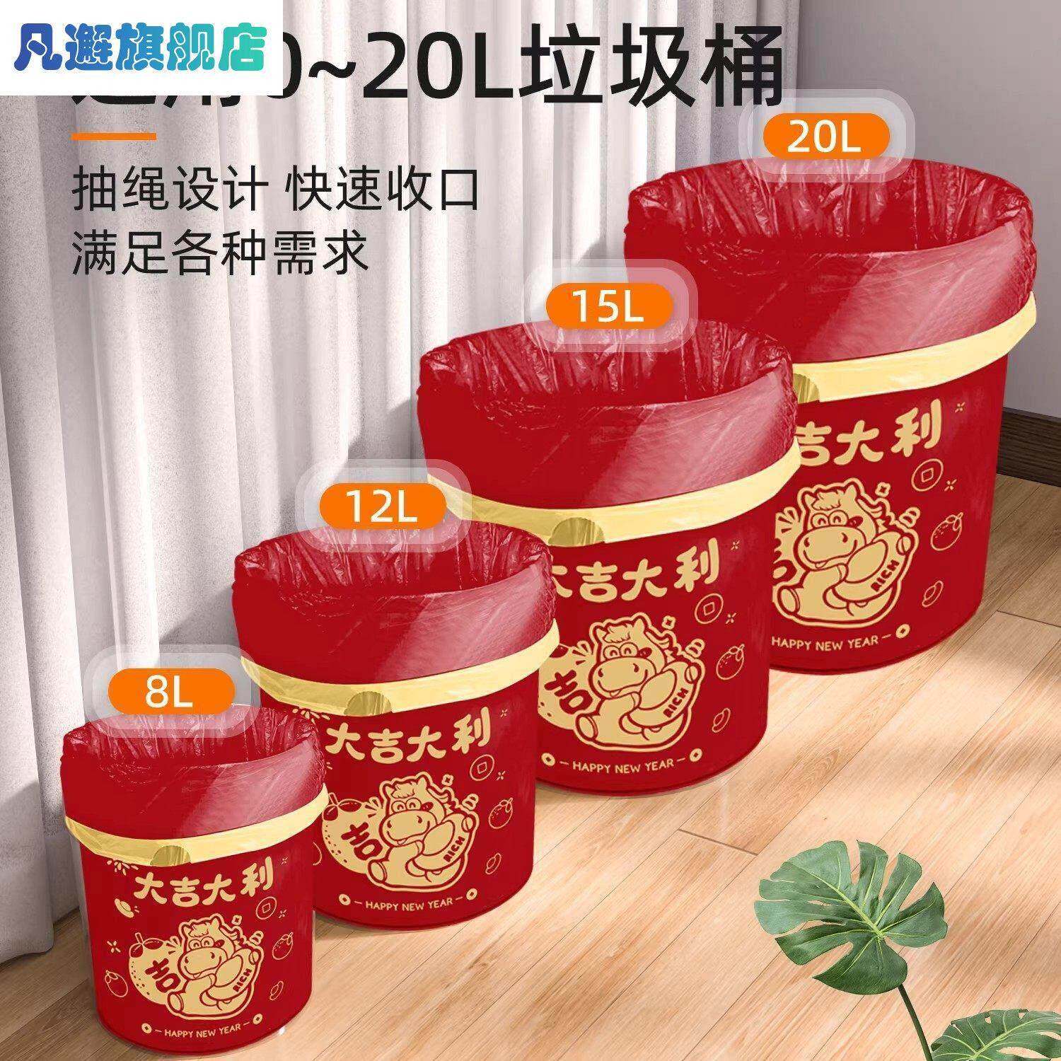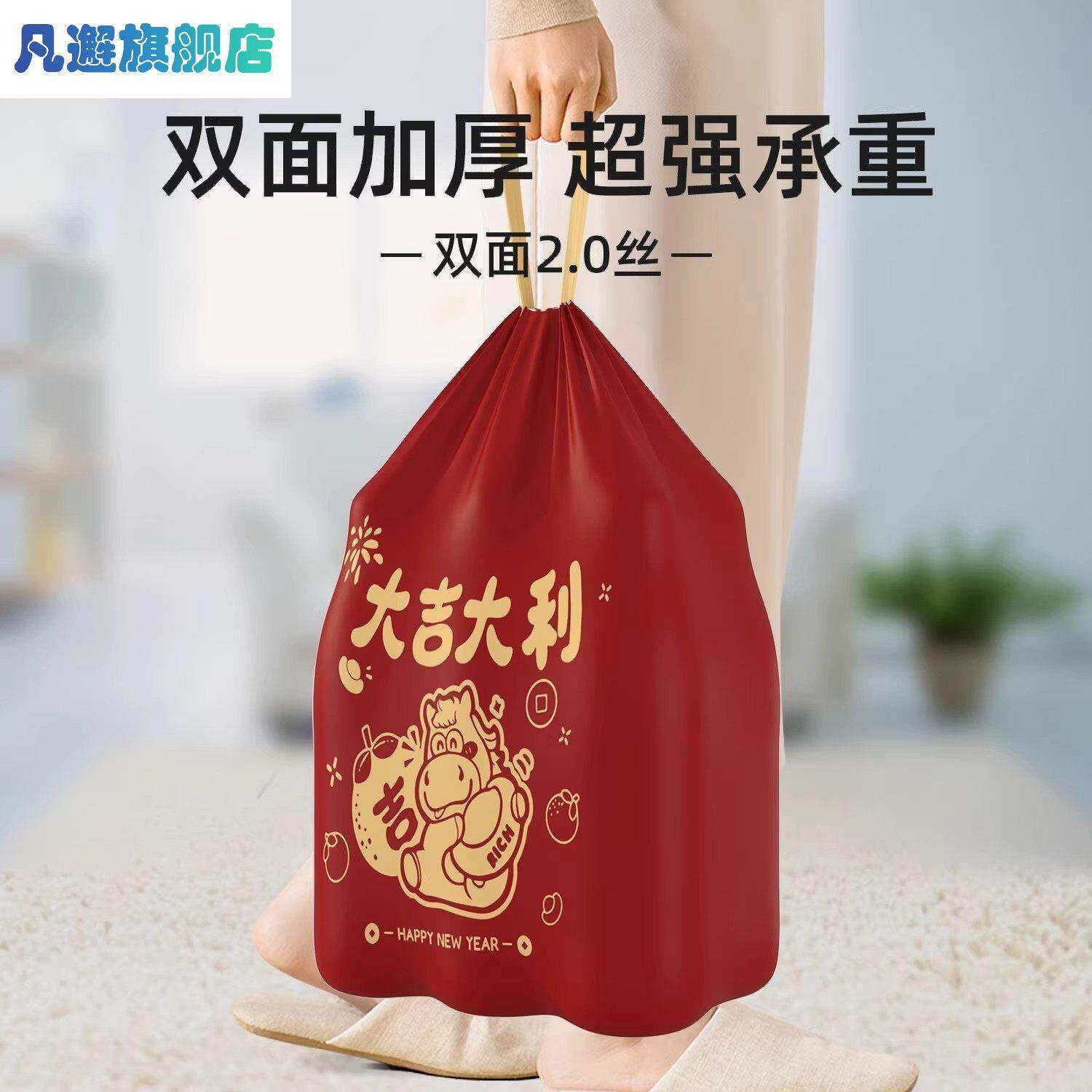 新年垃圾袋家用加厚手提式免撕大号抽绳超厚厨房用马年红色清洁袋