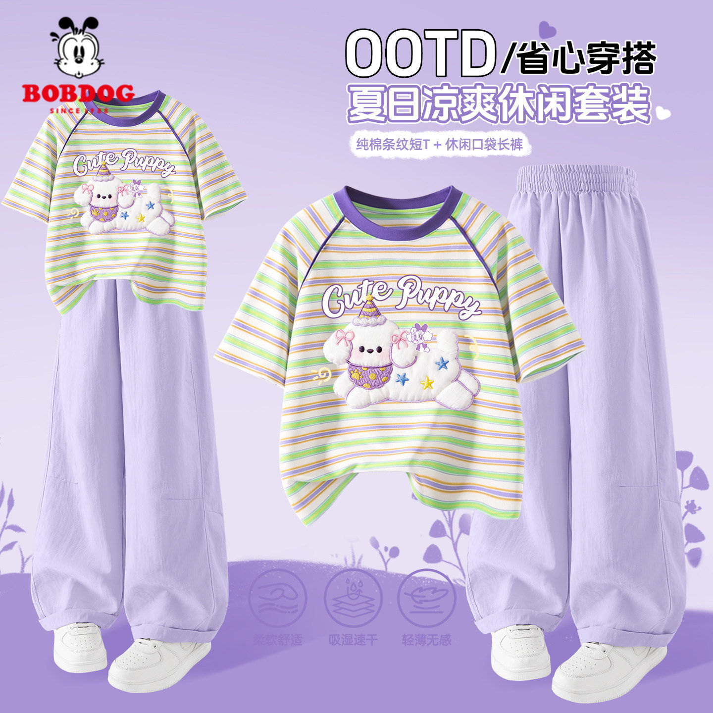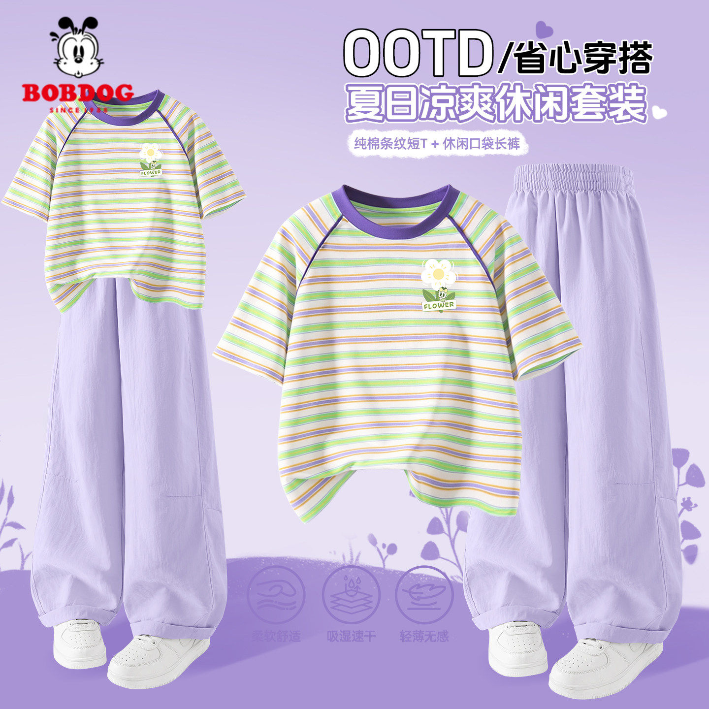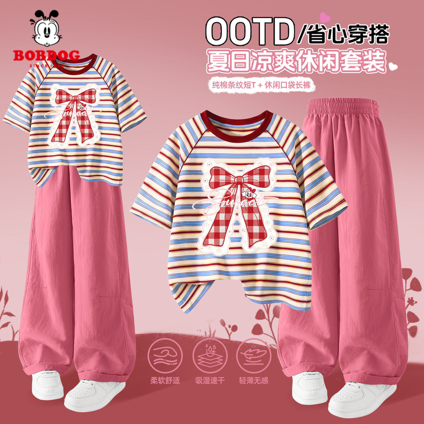 巴布豆童装女童夏装套装2026新款休闲薄款大童短袖超好看儿童裤子