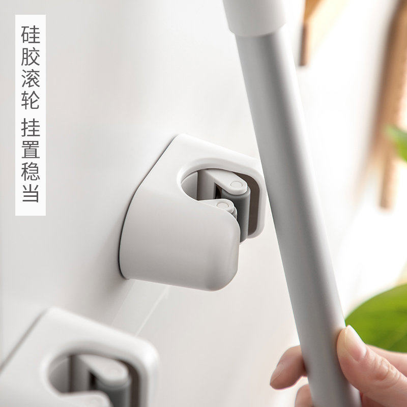 日系免打孔上墙拖把夹不掉固定卡扣扫把墙面挂钩挂架背胶收纳防水