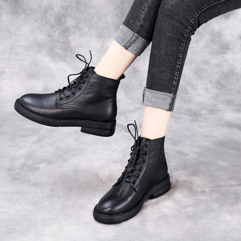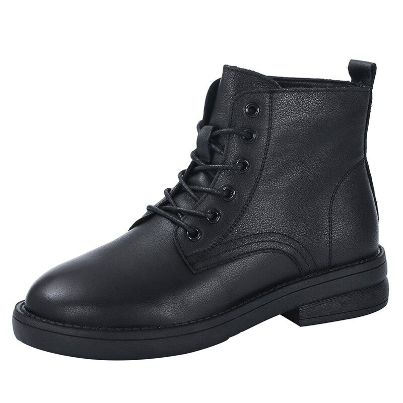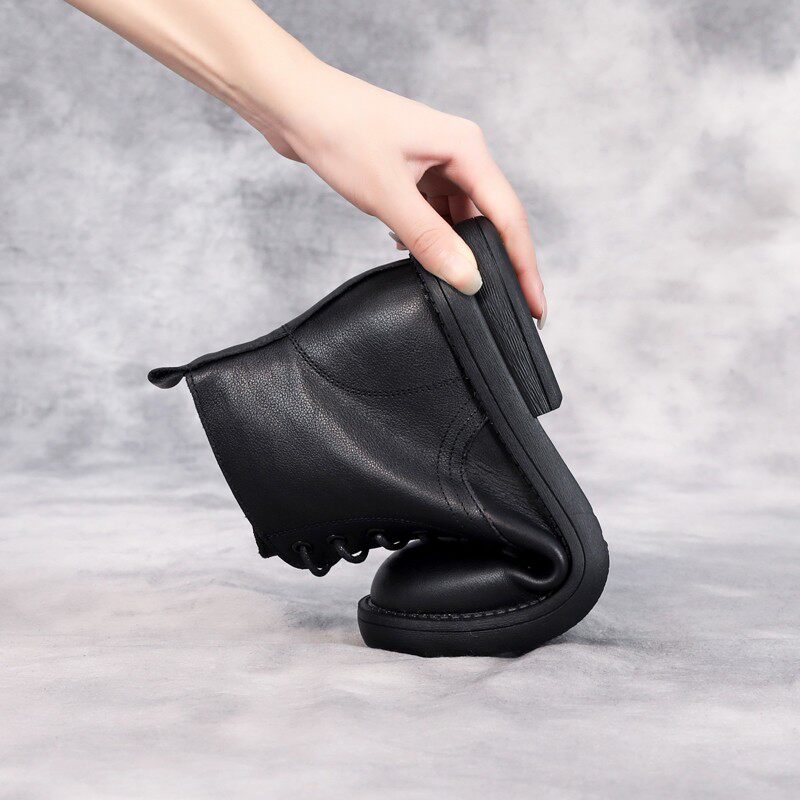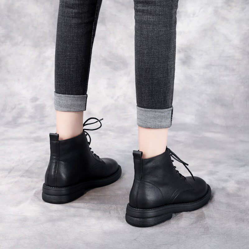 真皮小短靴女款低帮马丁靴秋冬软底加绒二棉鞋牛皮矮靴平跟软皮鞋