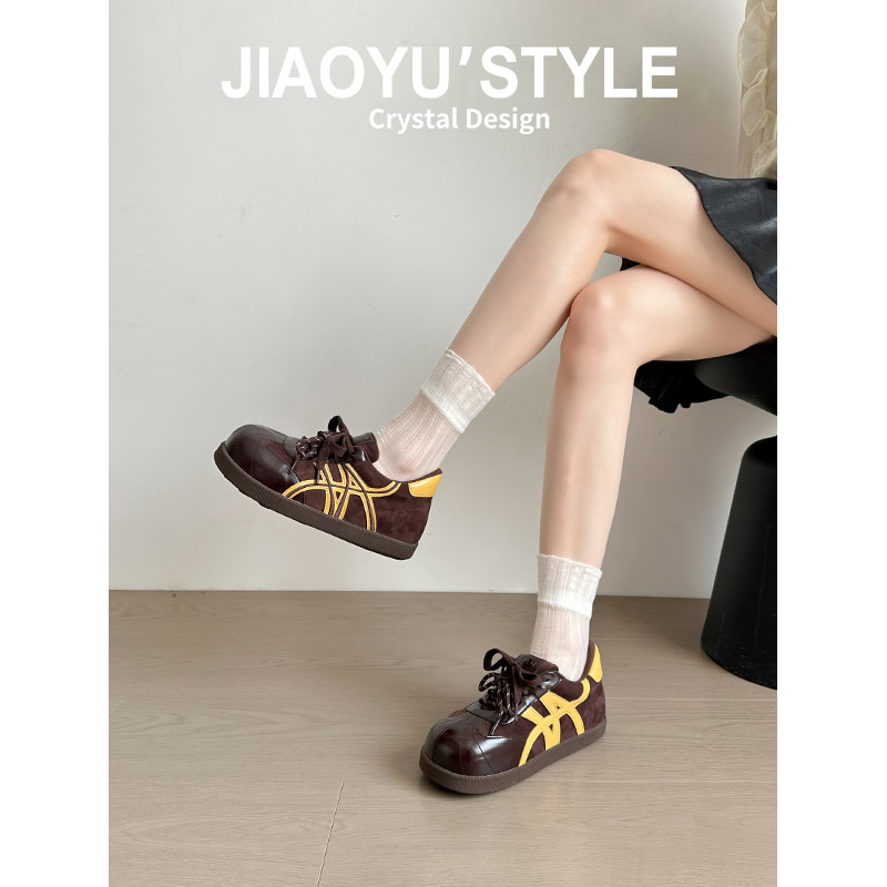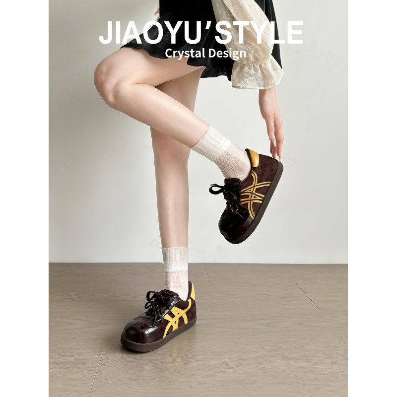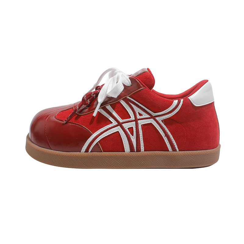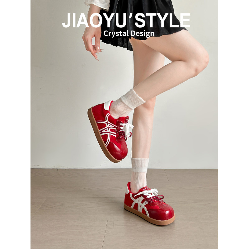 真皮~骄屿内增高6CM厚底红色系带德训鞋女2026新款大头丑萌运动鞋